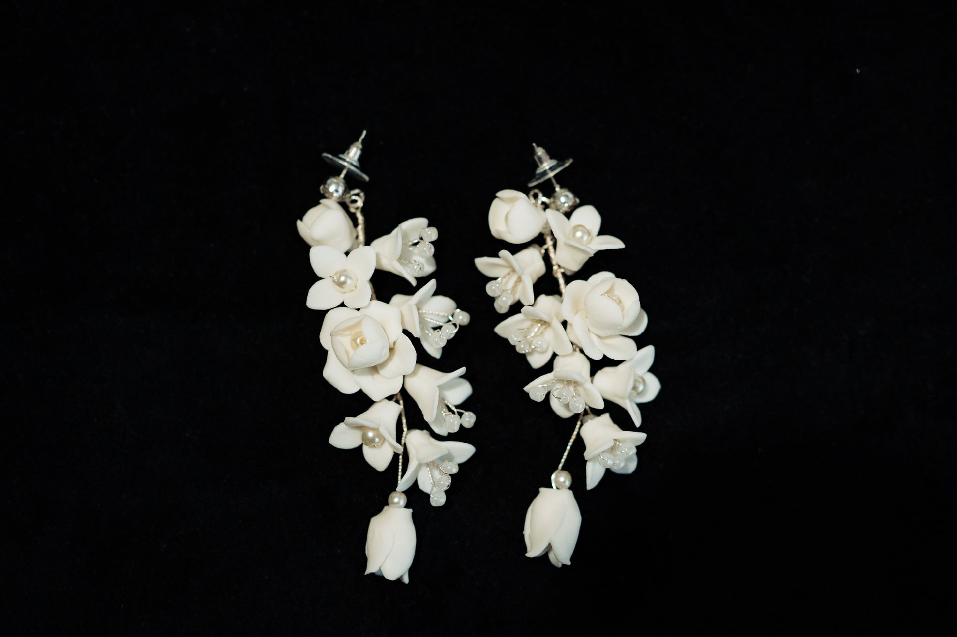These gorgeous handmade earrings are made from porcelain and pearl beads. They are delicate and beautiful. Wear them for your wedding day, a bridal shower or bachelorette party!