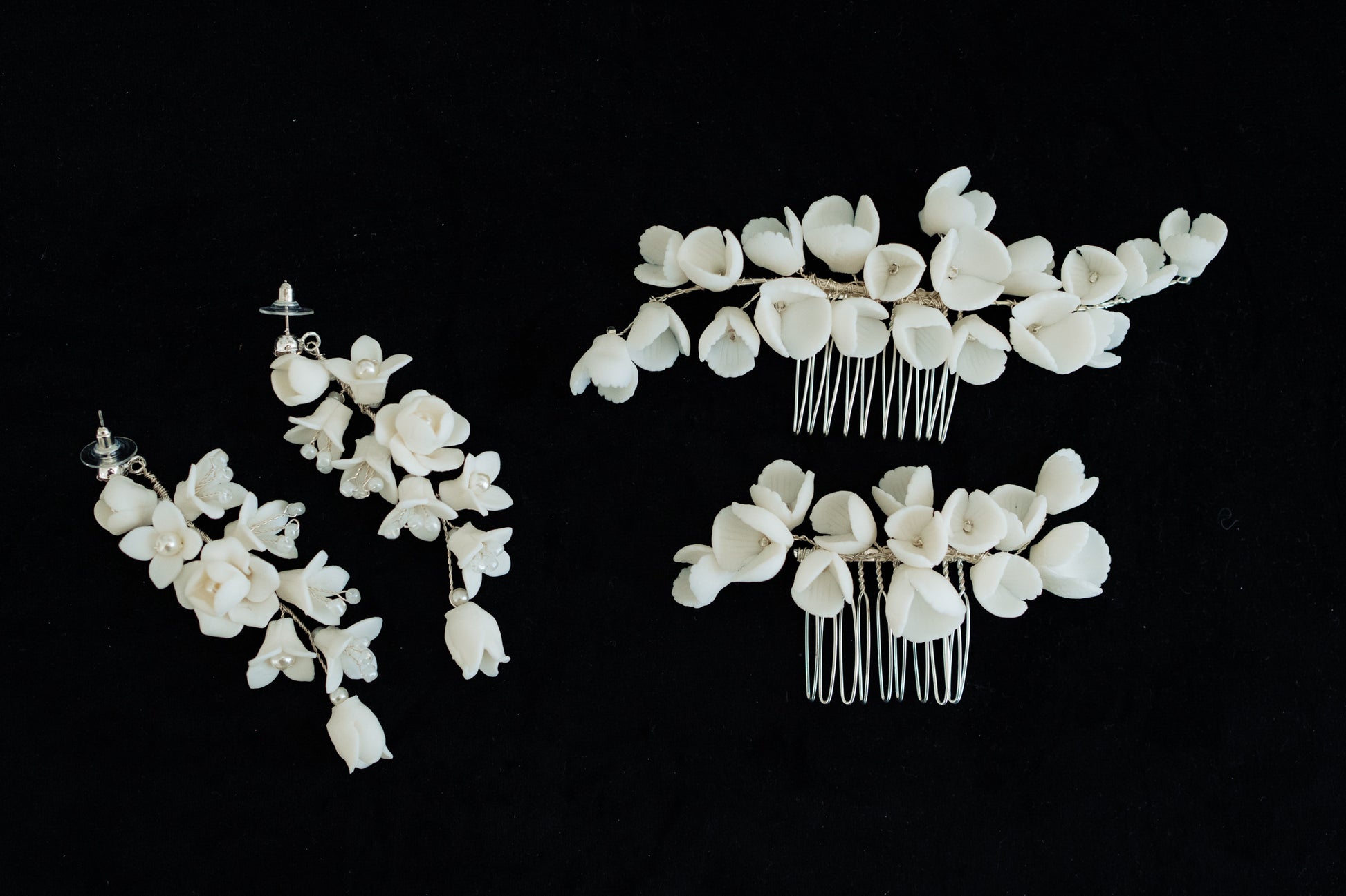 It took me awhile to decide on a comb and let me say I am so glad to have picked the Etta! It is stunning and the porcelin flowers are lovely. This piece is filled with details and is absolutely beautiful. Big shout out to the duo of Brides and Belts, easy to communicate with and are very tentive and quick to respond and help. Shipping was fast and it came perfectly packaged. I can't say this enough but thank you Brides and Belts, I absolutely love the Etta and I can't wait to wear this on my Wedding Day.
