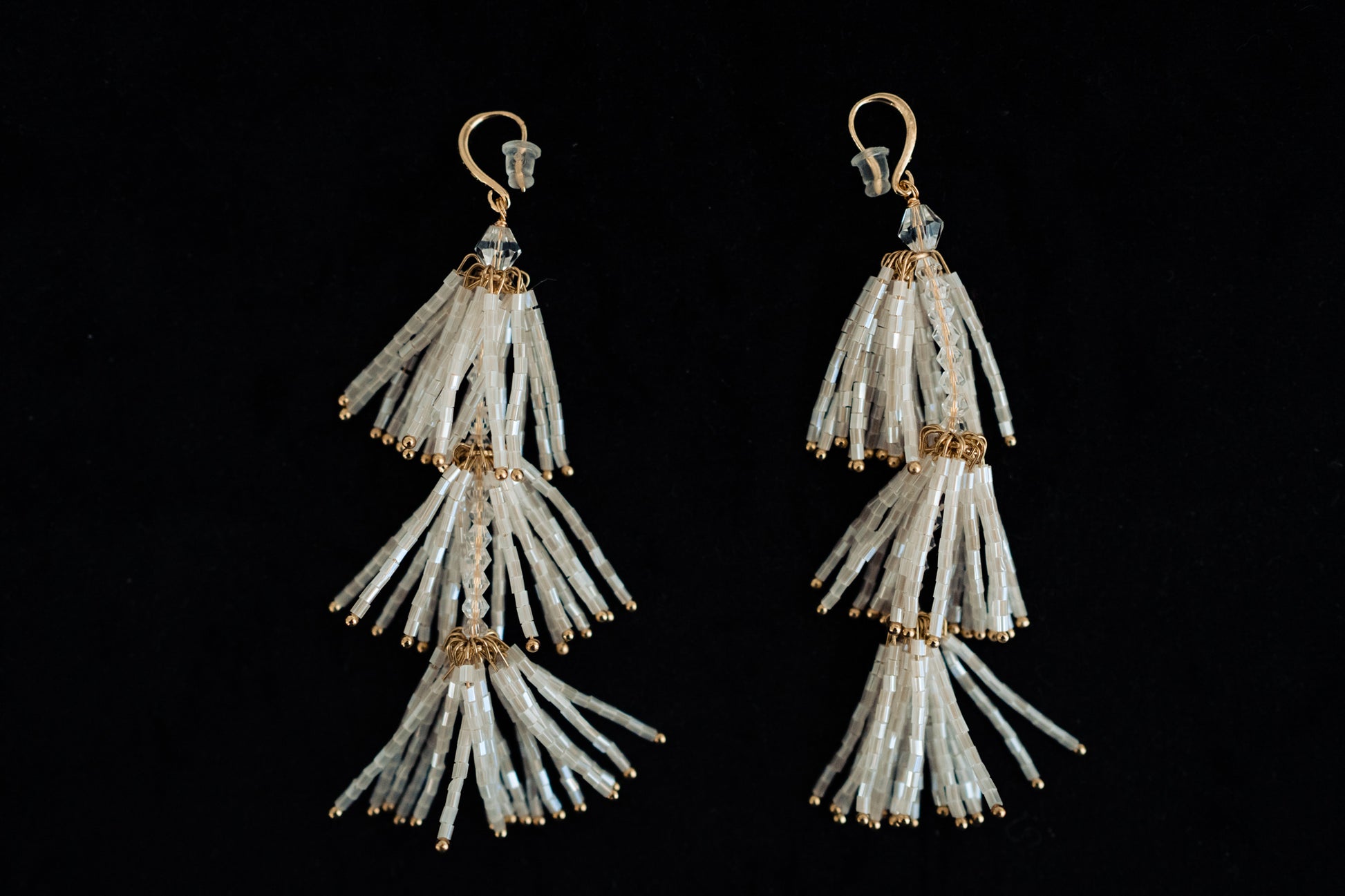 These gorgeous handmade earrings are made from beads. They are a tassel style and so unique with a gold finish! Wear them for your wedding day, a bridal shower or bachelorette party!