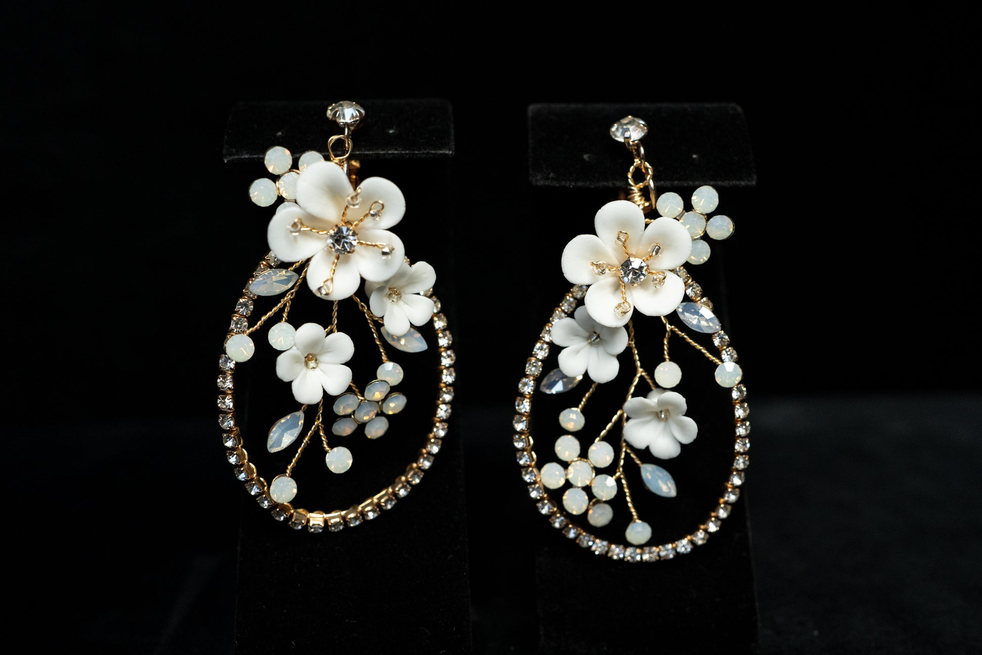 These gorgeous handmade earrings have beautiful beachy boho vibes! They have unique ceramic flowers framed in crystal and you can wear them for years to come.