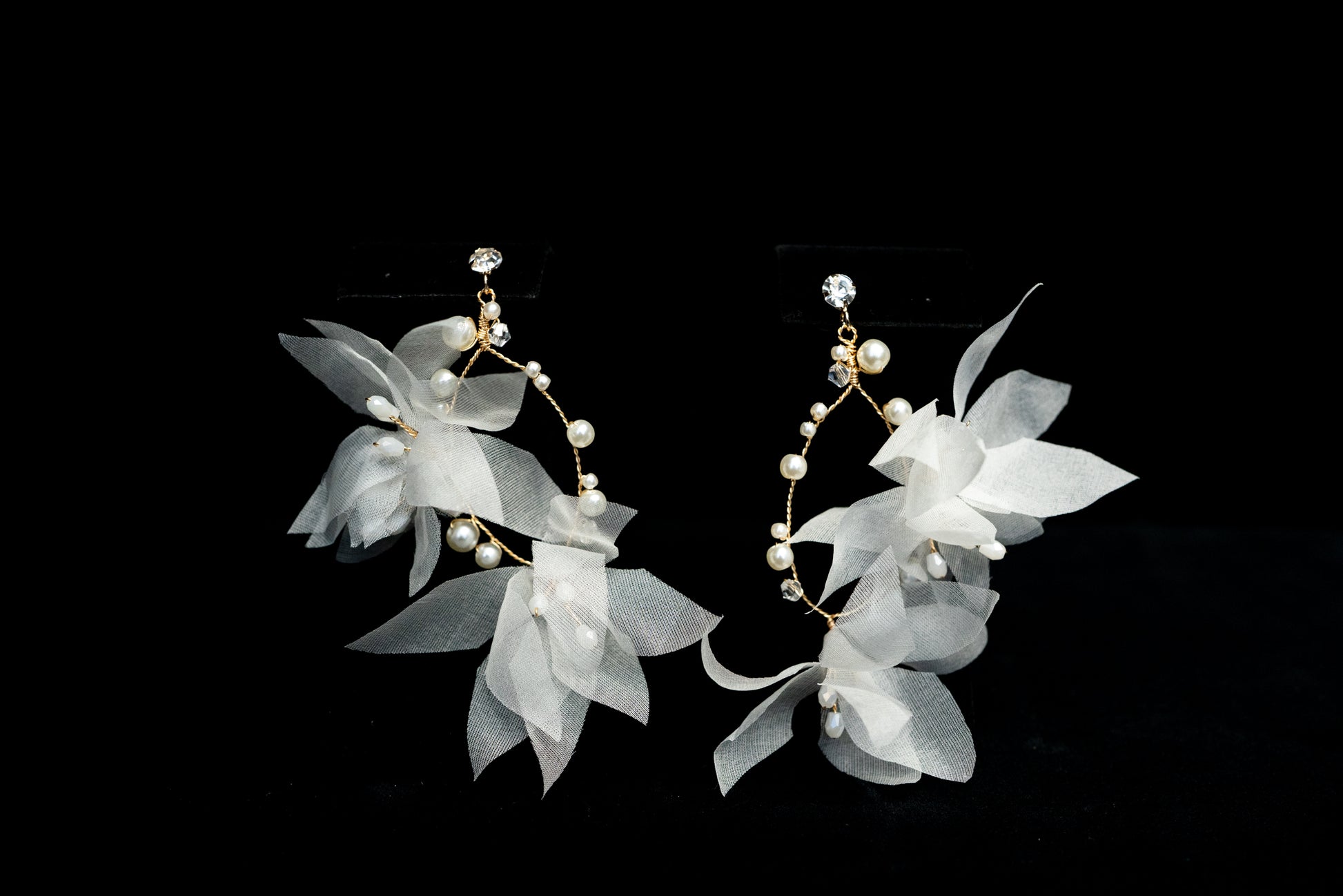 These gorgeous handmade earrings have beautiful beachy boho vibes! Those unique white gauze flowers and pearls will add a beautiful statement to any outfit for years to come.