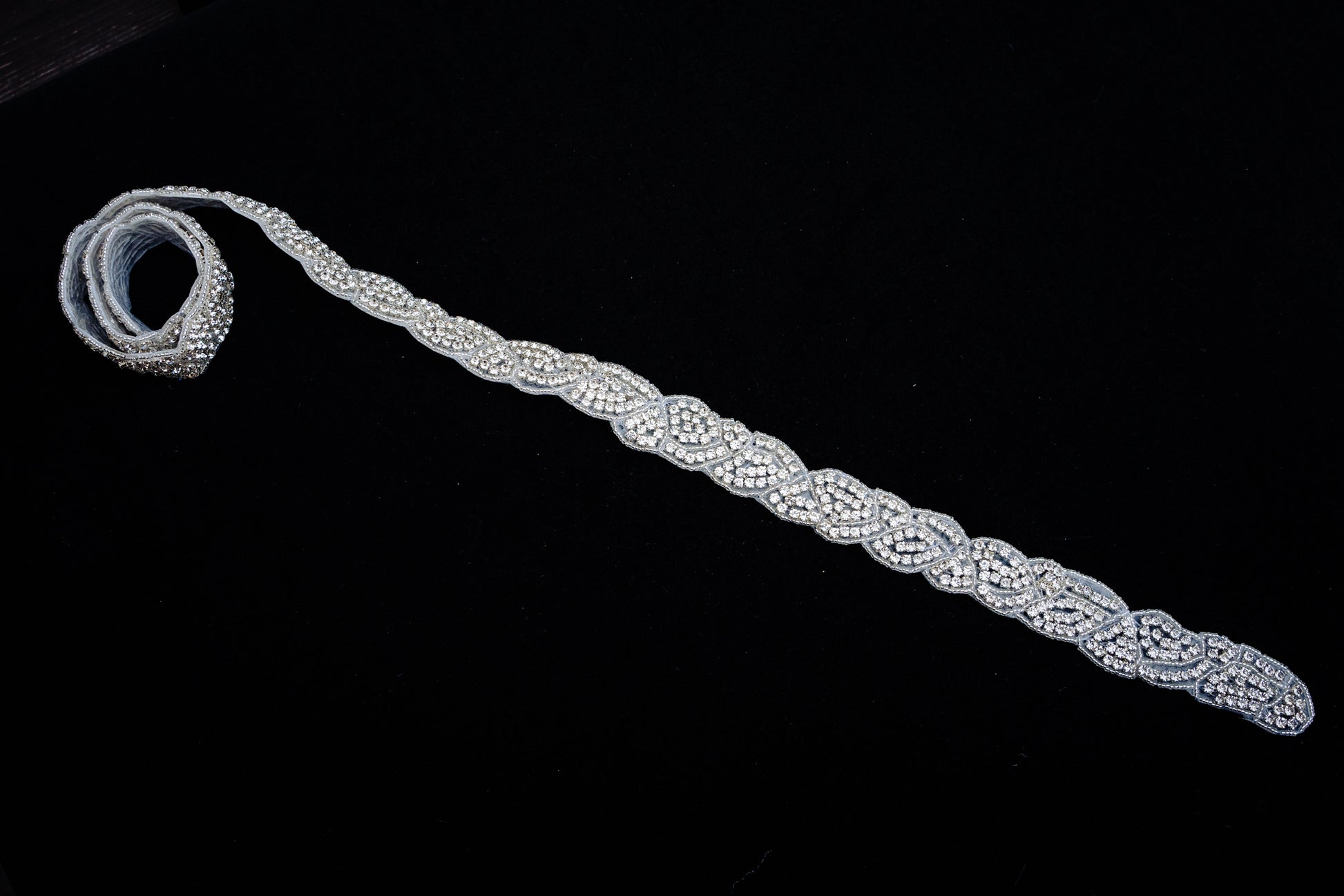 We love this silver rhinestone handmade appliqué/belt.