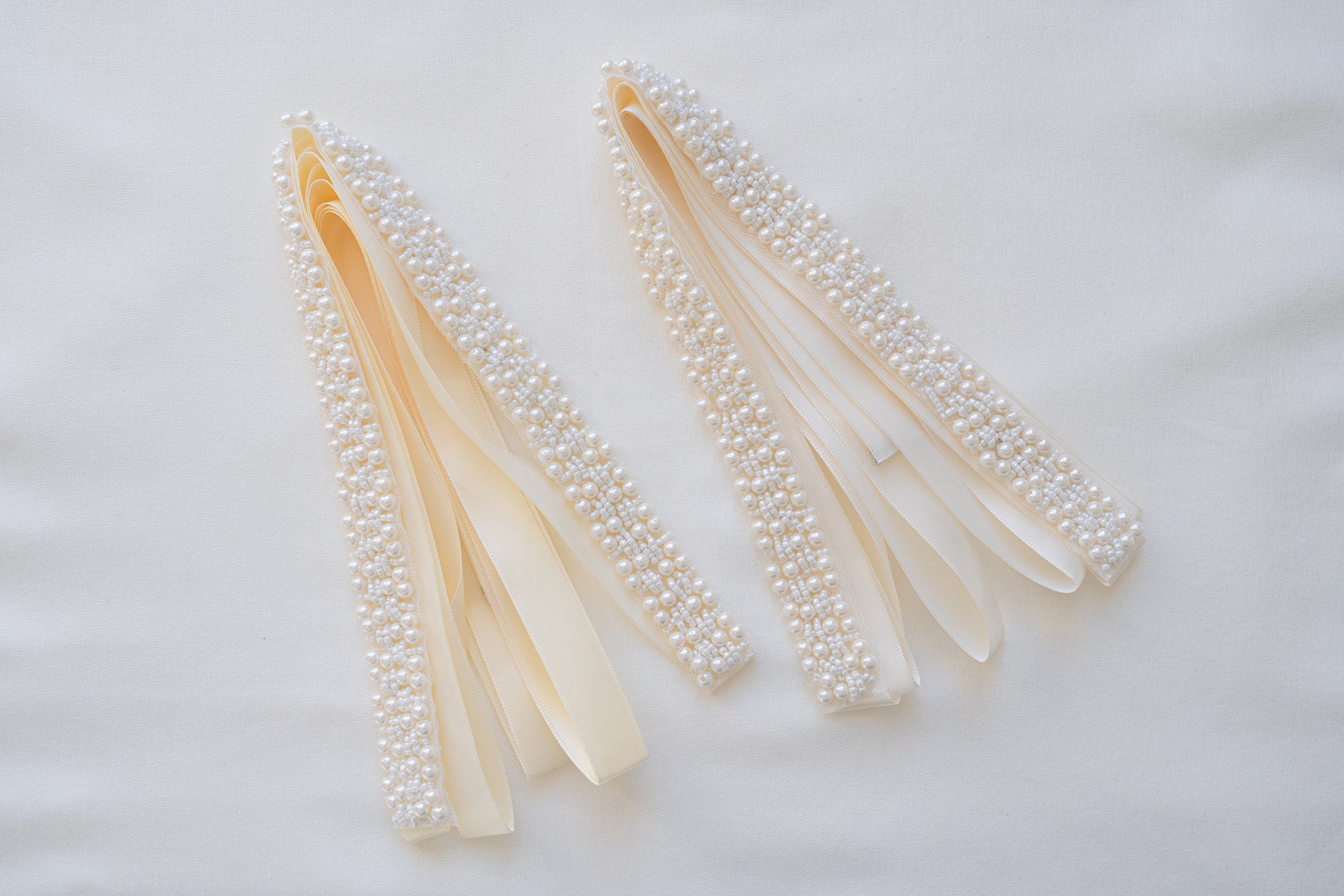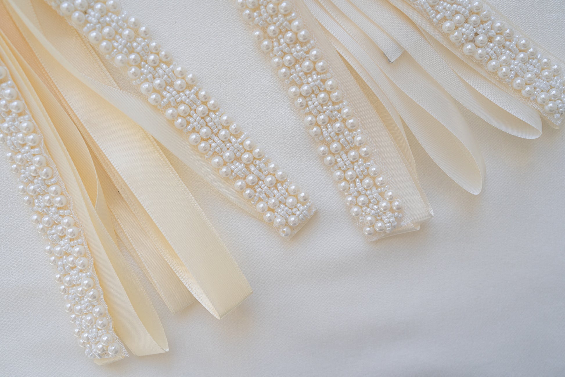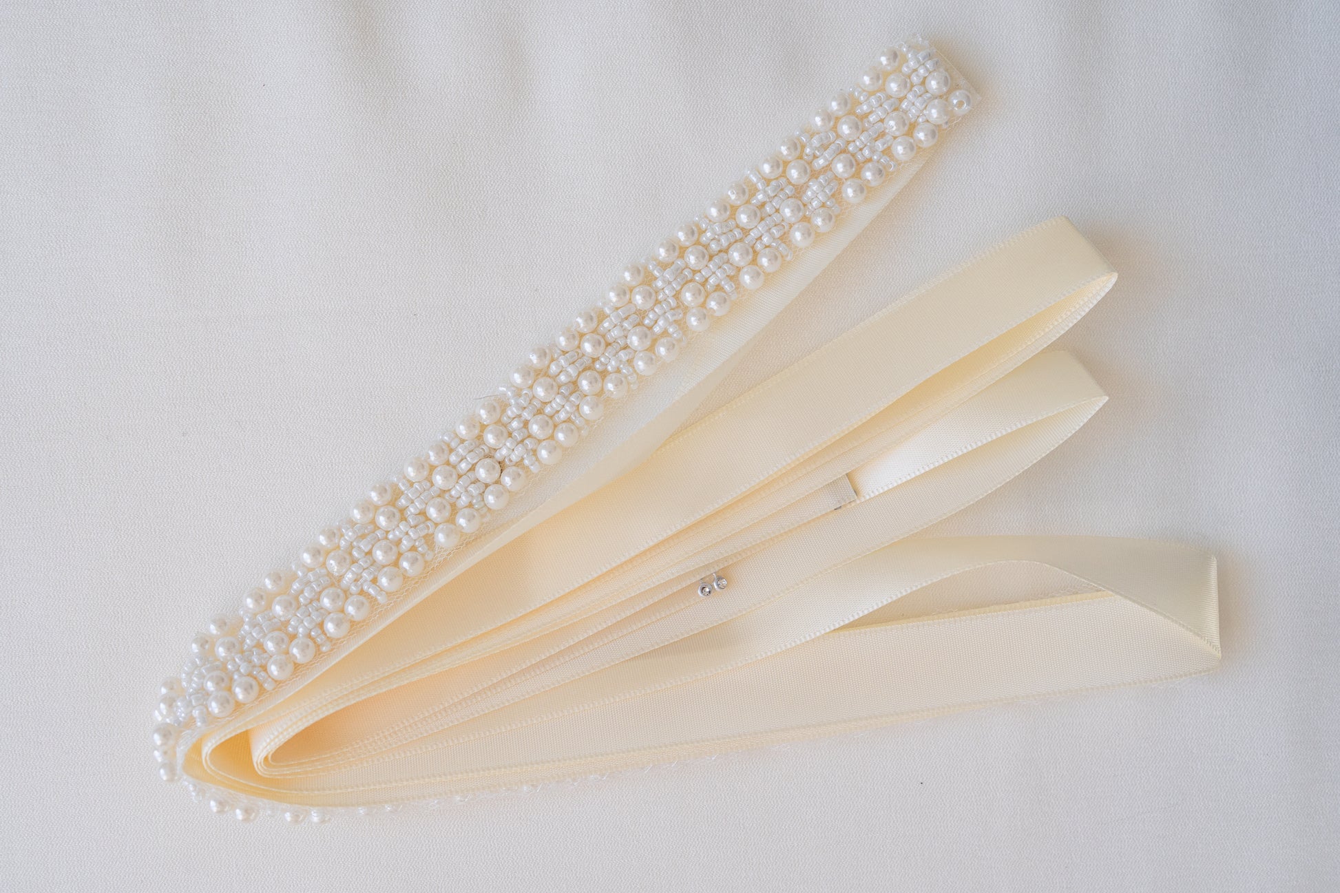 We love this stunning handmade pearl and beaded belt! This delicate belt is the perfect addition to your wedding dress.