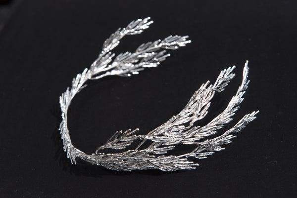 The Andrea is unique and has a gorgeous silver and/or gold olive branch design. Wear it like a tiara, a Grecian goddess, or like a headband in your hair to add a stunning focal point on your wedding hairdo. We love it and it's the perfect hair accessory for any bride!
