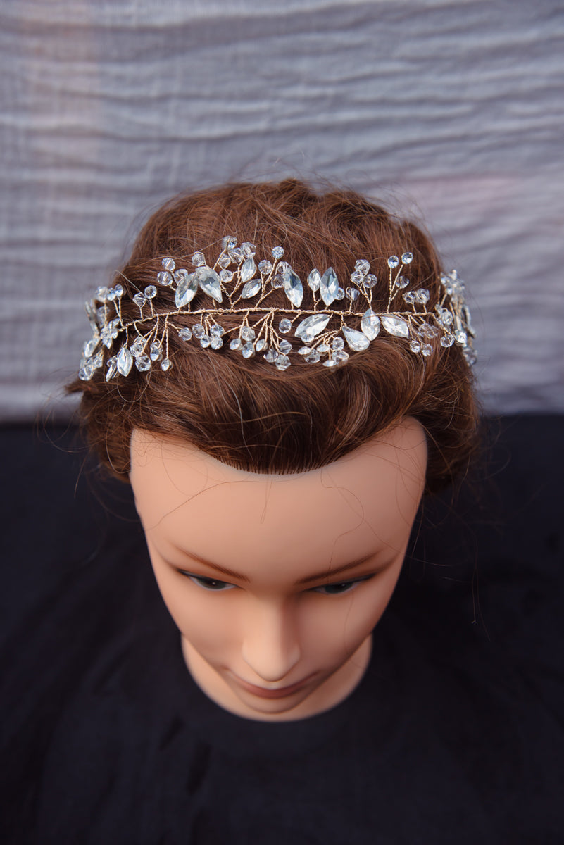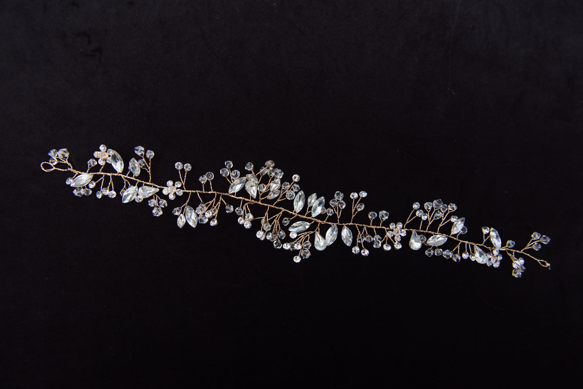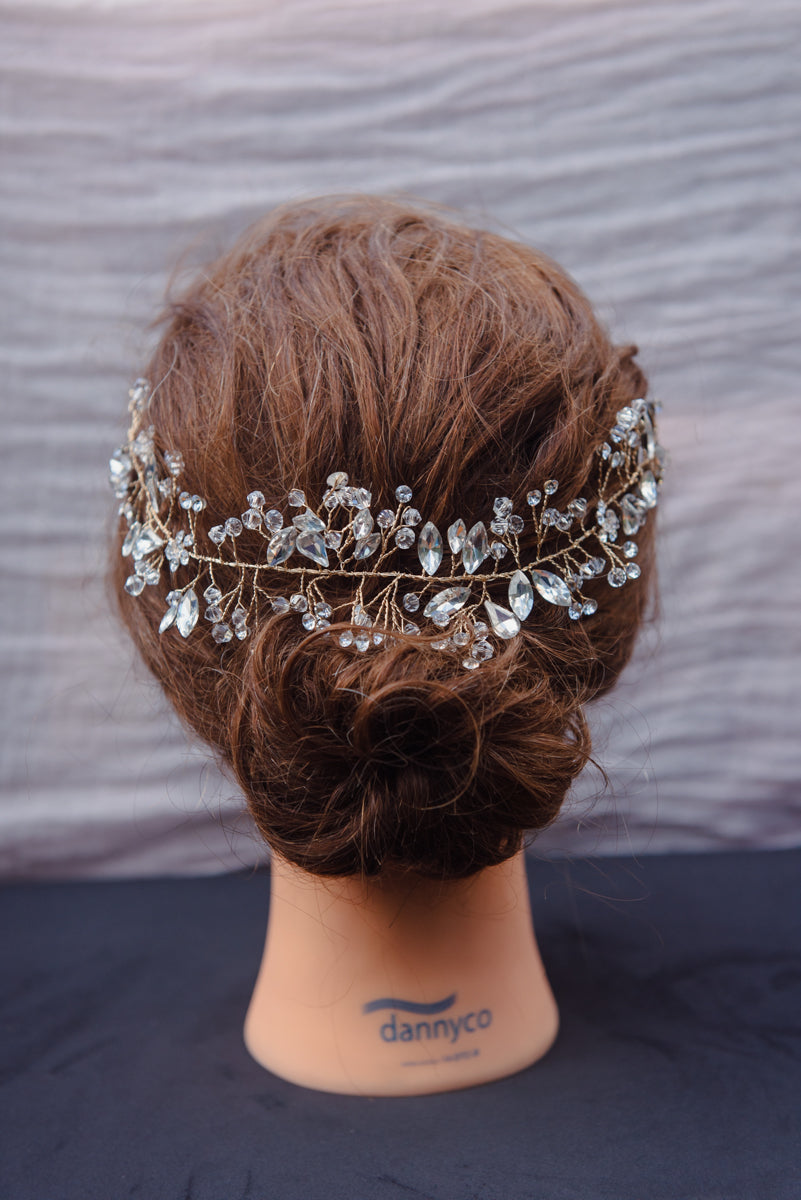The Athena accessory is stunning and delicate. This gold hair accessory has gold wire styling so you can shape it any way that fits your hair. It is a beautiful addition of bling and glamour to your hair on your wedding day!