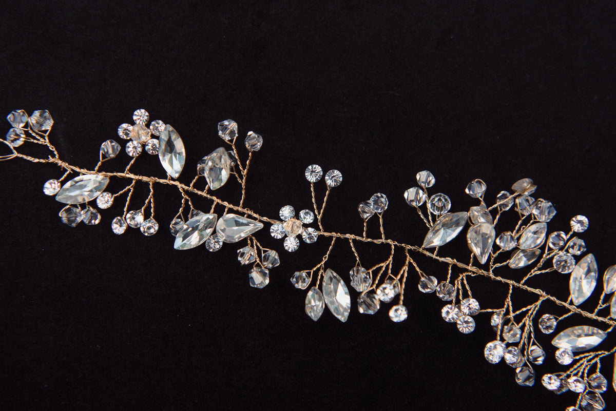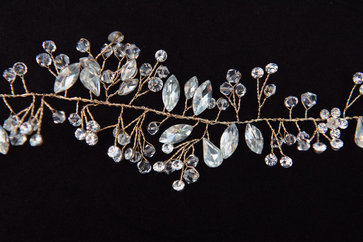 This gorgeous handmade crystal and beaded accessory is the perfect addition to your wedding day! It's perfect for your wedding hairstyle - whether it's half up/half down, an intricate up-do, or worn as a headband! It can also be worn on your wedding dress as a belt appliqué.