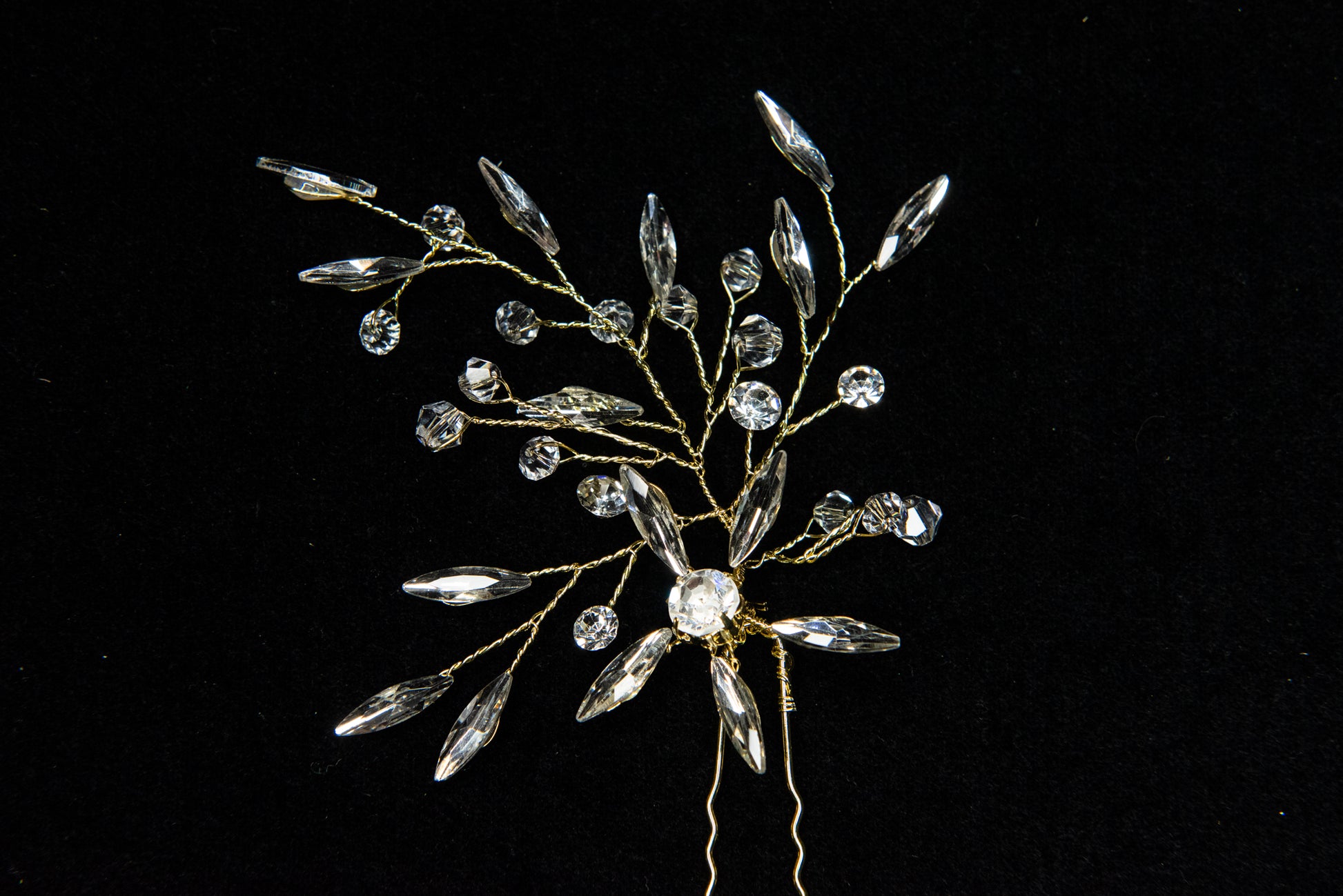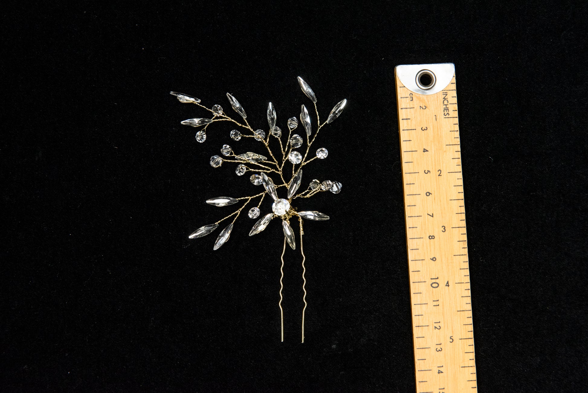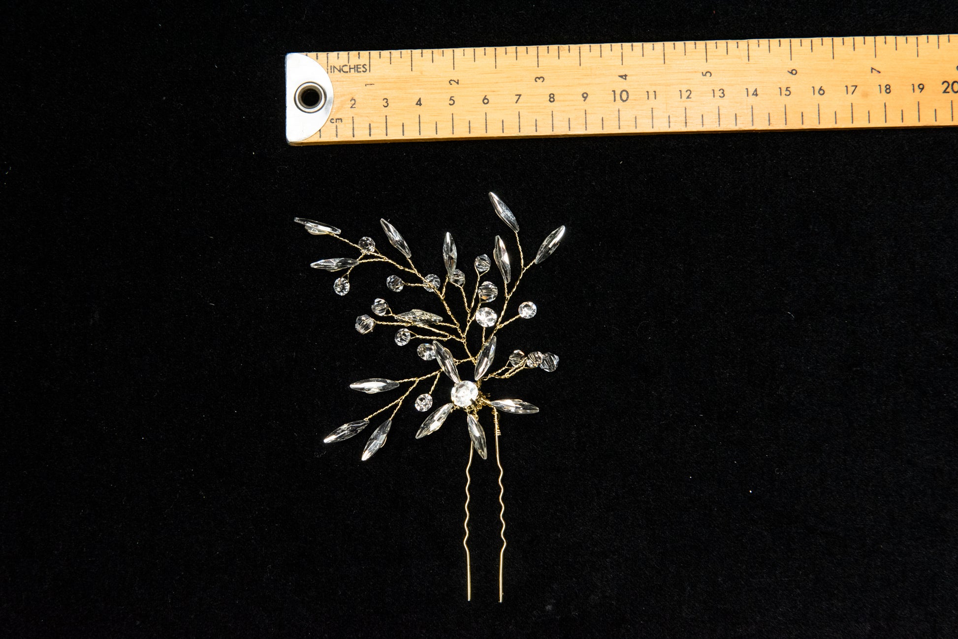The Blake hair pin is handcrafted and has a stunning gold wire design. It will look amazing in your hair! It's a beautiful addition of bling and glamour to your hair on your wedding day!