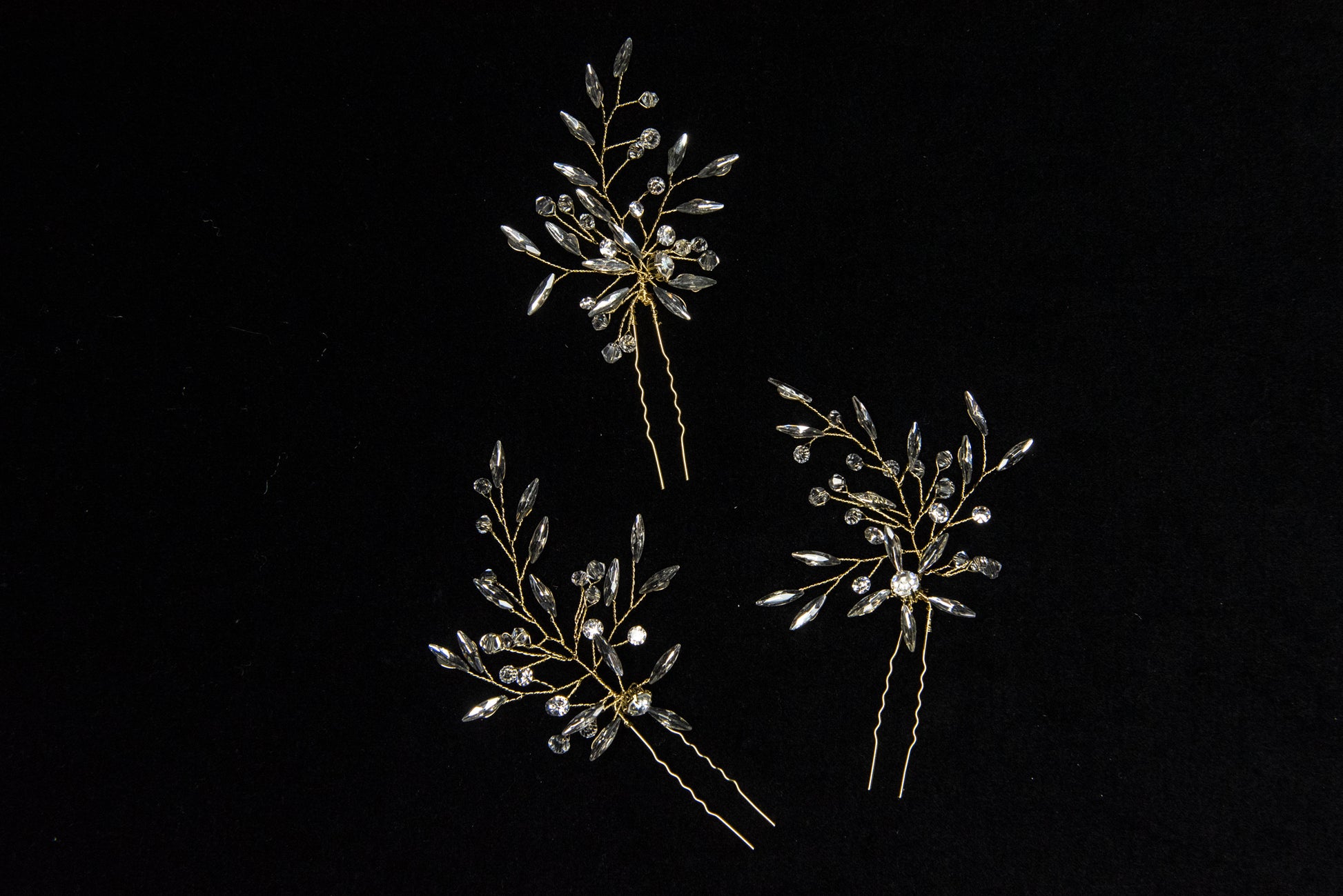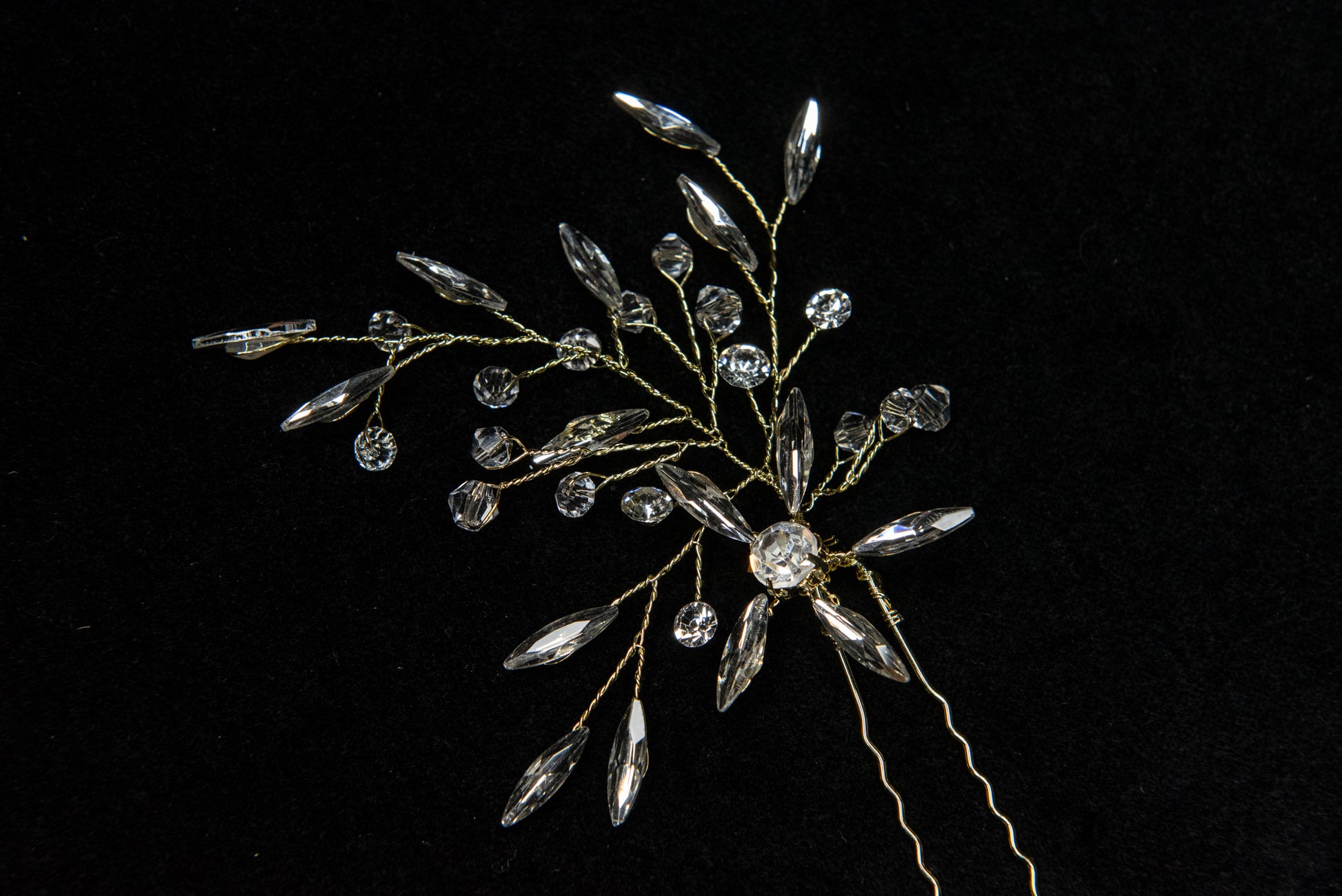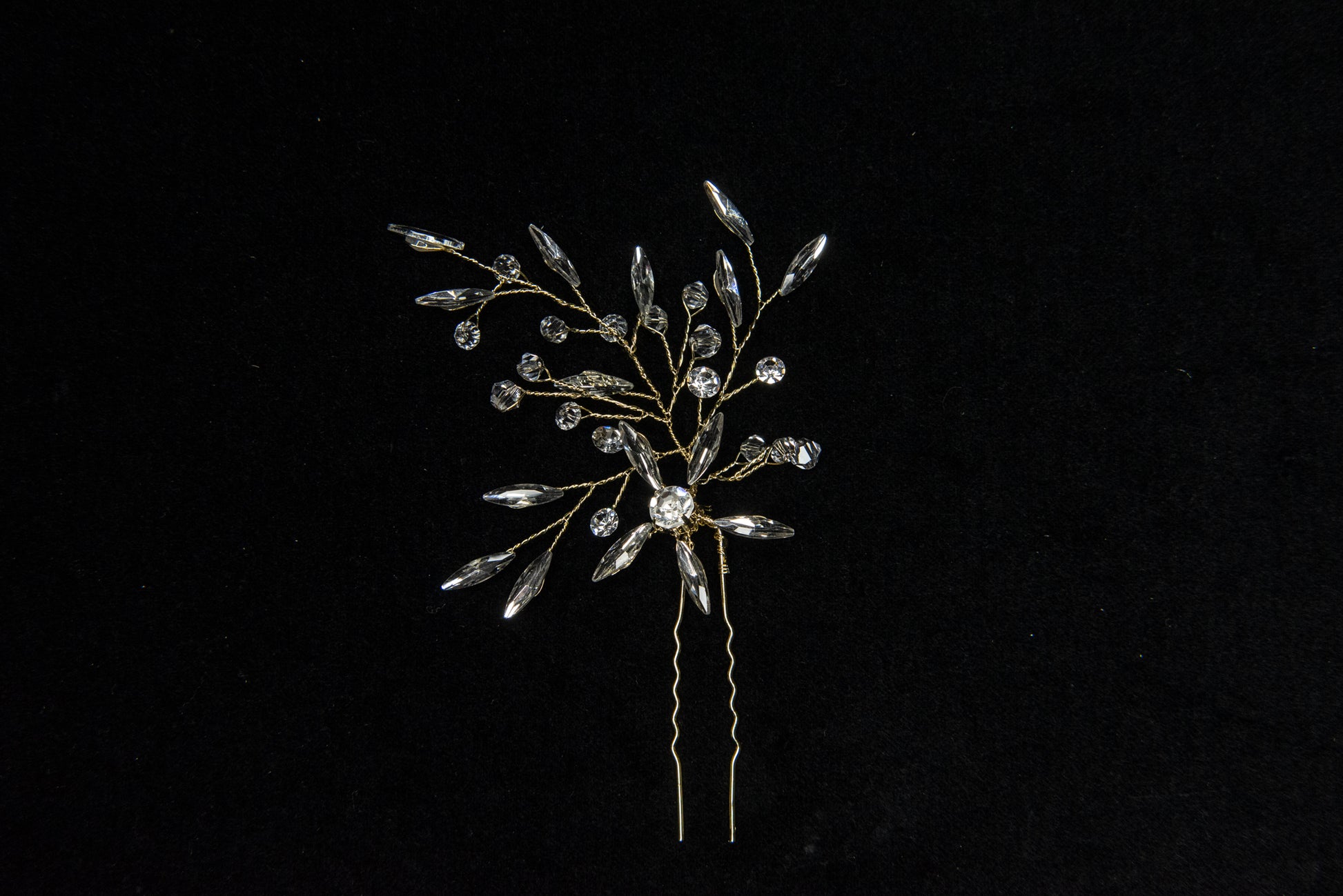 The Blake hair pin is handcrafted and has a stunning gold wire design. It will look amazing in your hair! It's a beautiful addition of bling and glamour to your hair on your wedding day!