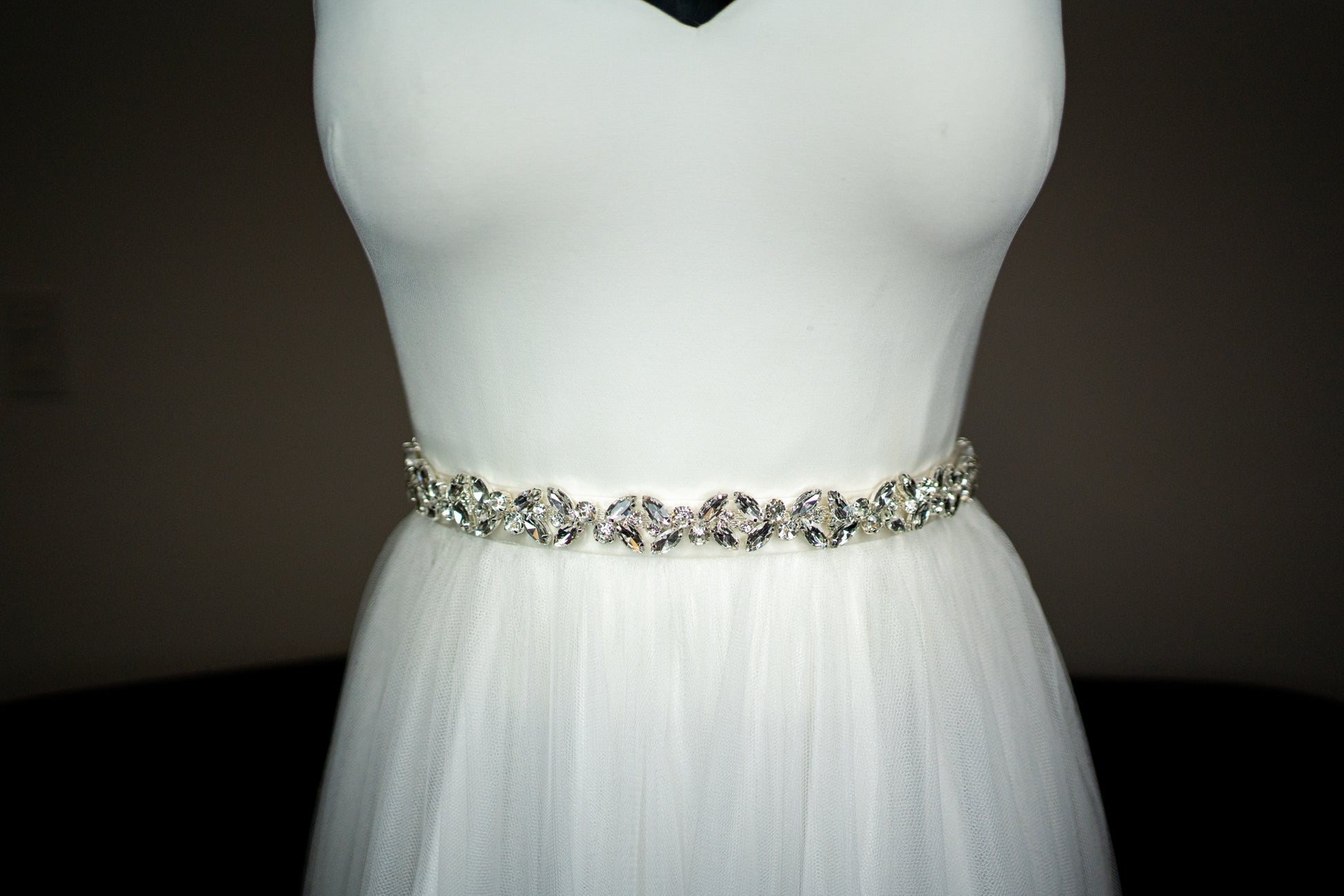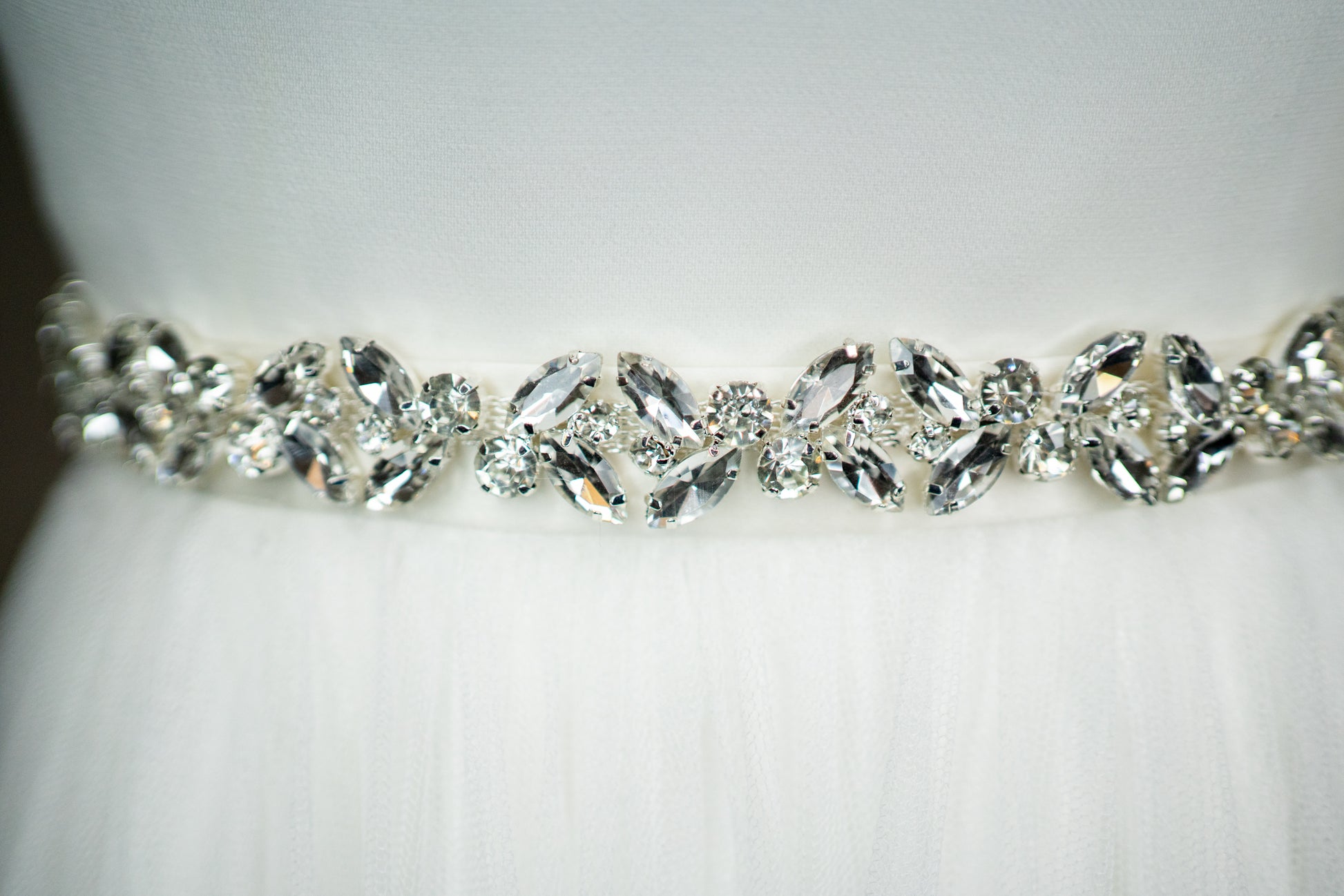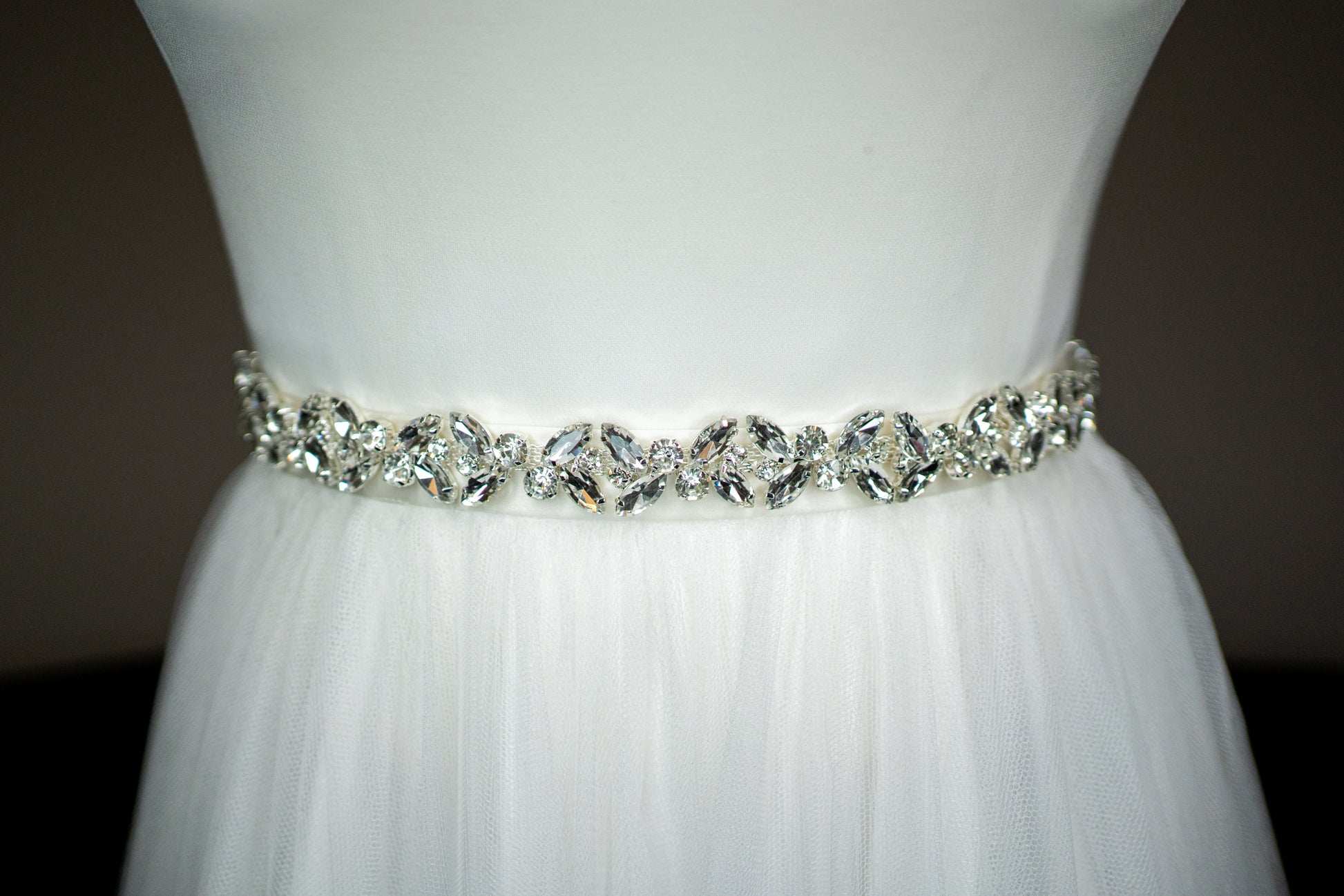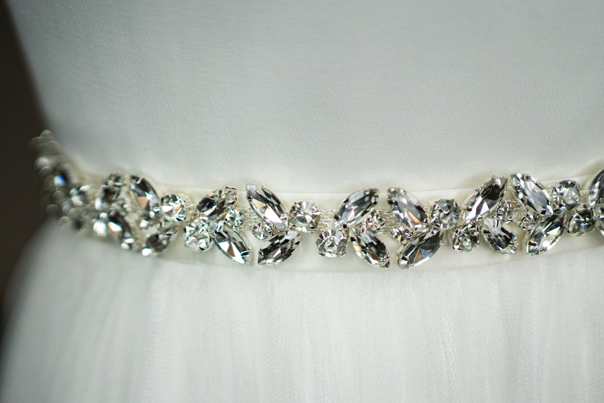 We love this stunning handmade crystal belt! This simple belt is the perfect addition to your wedding dress.