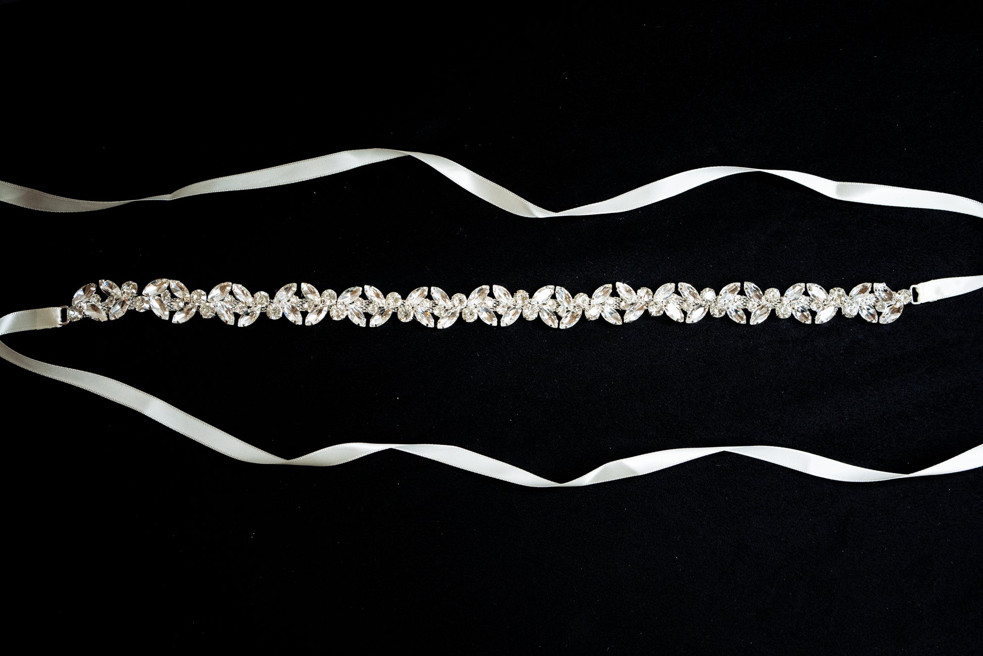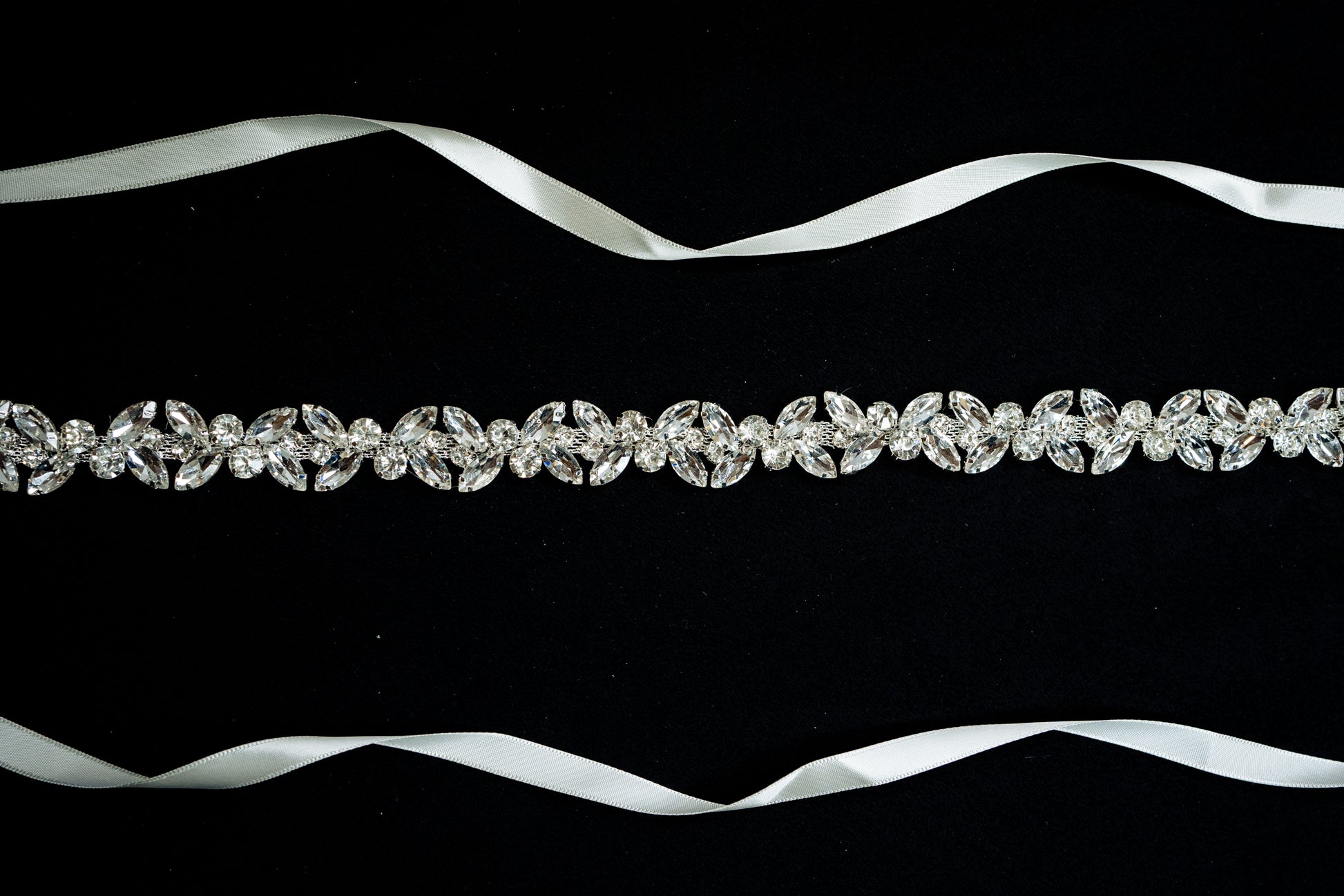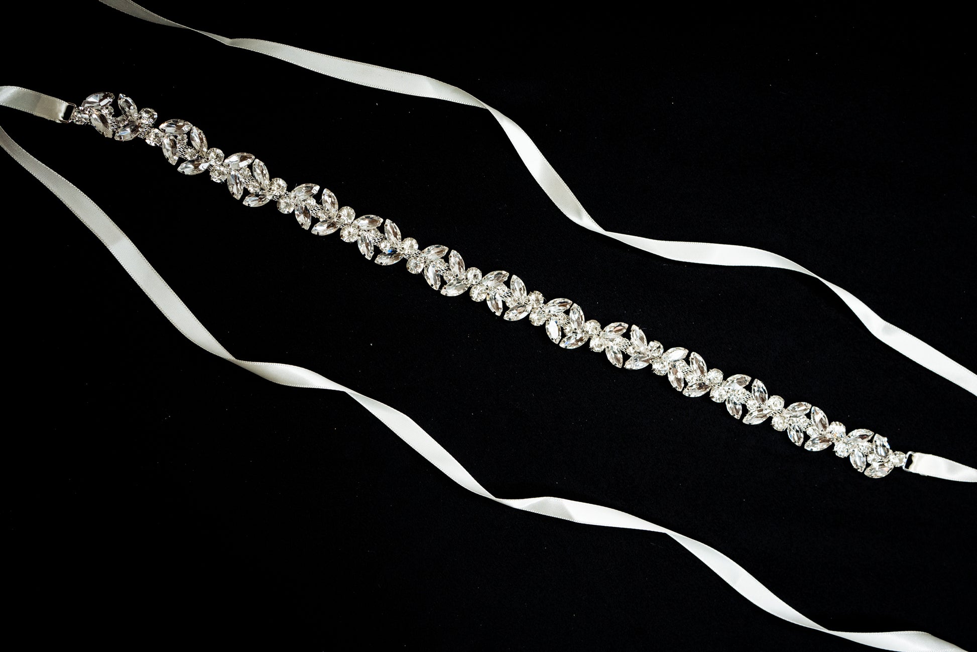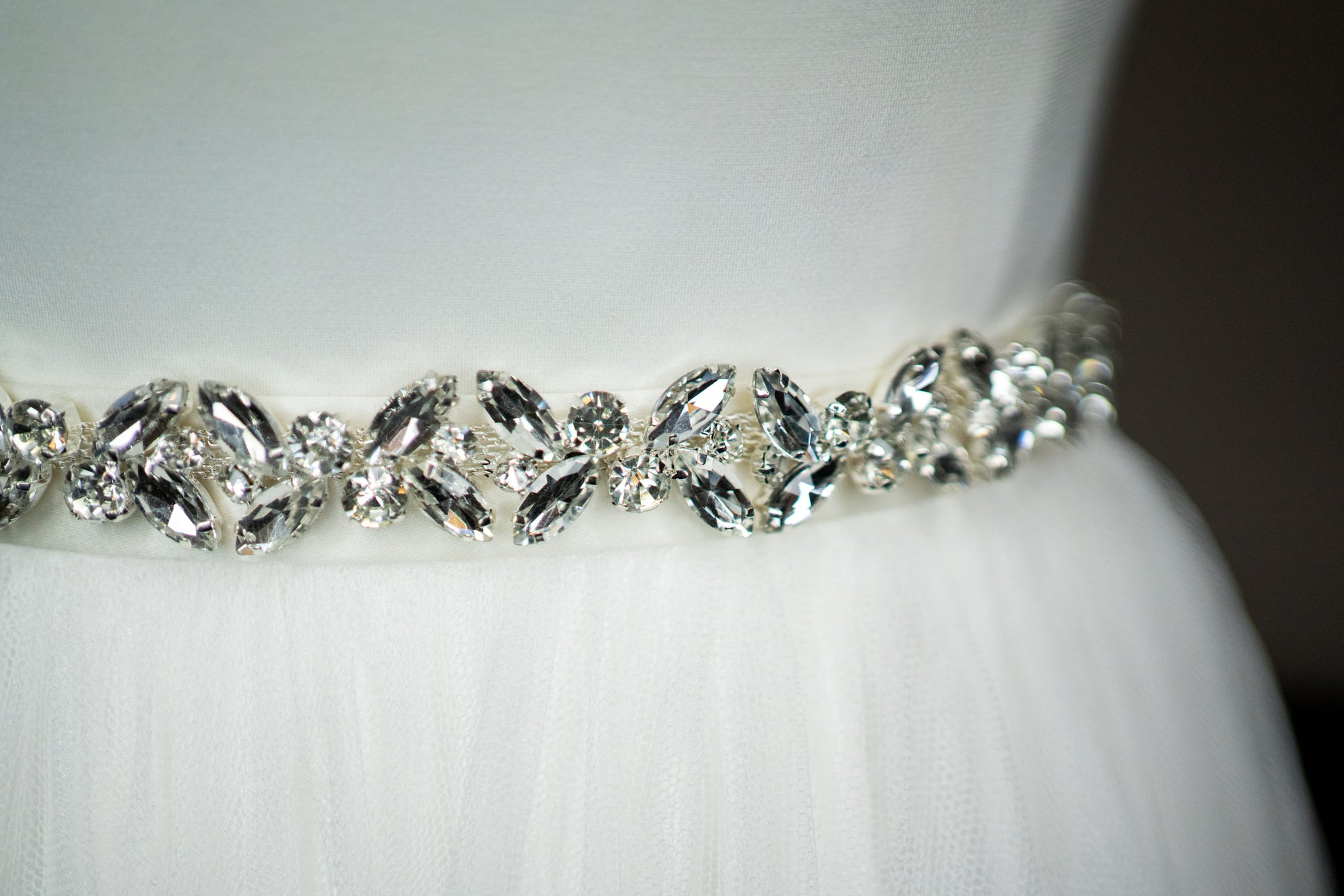 We love this stunning handmade crystal belt! This simple belt is the perfect addition to your wedding dress.