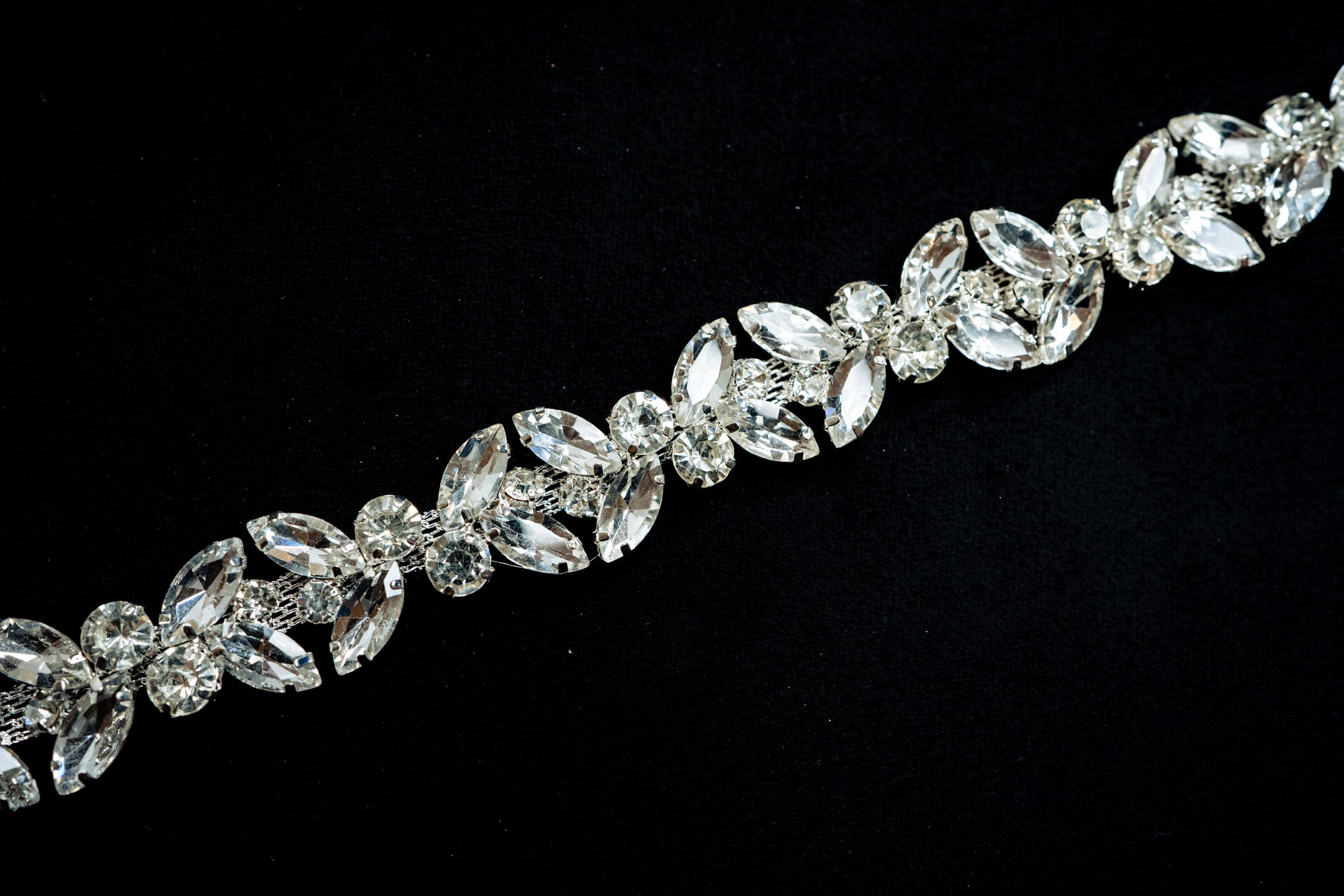 This belt is FANTASTIC! I was worried about ordering online, especially a website I wasn't familiar with, but I am so glad I took the chance. I got it at a great price, which was important because I was buying 3 to sew all the way around my dress (I'm a big gal!). Anywhere else I was looking would have been HUNDREDS of dollars! When I received them in the mail, I was blown away by the quality! They were just as bright and sparkly as in the pictures. It was easy to sew onto my dress, even taking a few pieces off to alter the length was no problem. There are a few areas where you can see the painting on the leaves spill over the to the other side or there's a rough spot around a gem but they are handmade pieces, they're such small details I could not have noticed if I wasn't right up close and personal sewing it on, and if it bothered me it would have been such an easy fix anyways. Very happy with my purchase here!