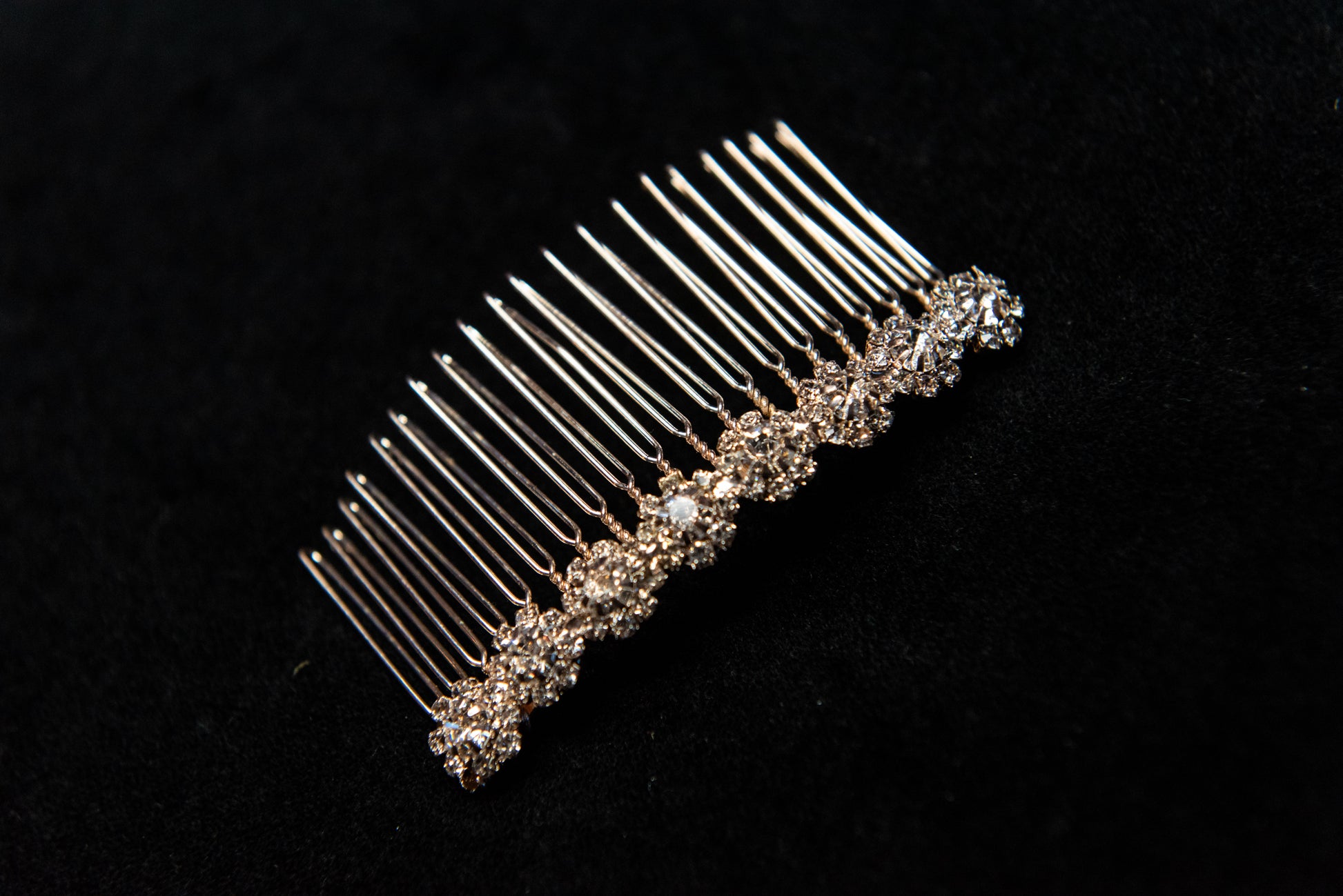 It took me awhile to decide on a comb and let me say I am so glad to have picked the Etta! It is stunning and the porcelin flowers are lovely. This piece is filled with details and is absolutely beautiful. Big shout out to the duo of Brides and Belts, easy to communicate with and are very tentive and quick to respond and help. Shipping was fast and it came perfectly packaged. I can't say this enough but thank you Brides and Belts, I absolutely love the Etta and I can't wait to wear this on my Wedding Day.