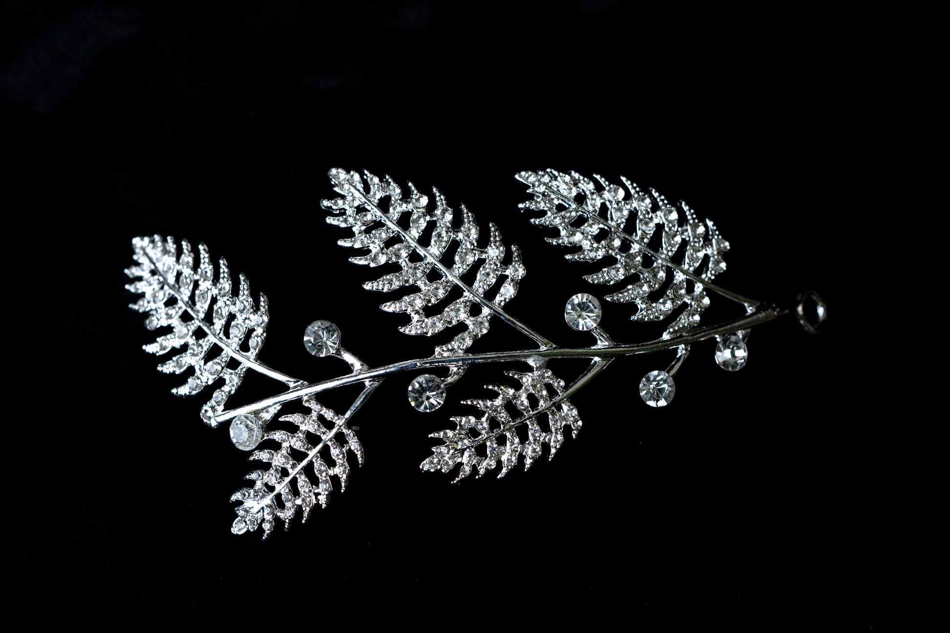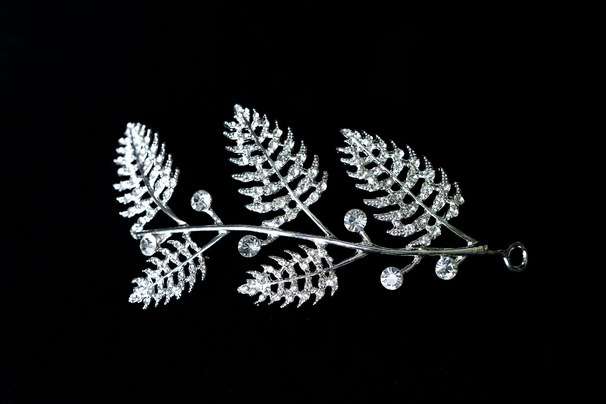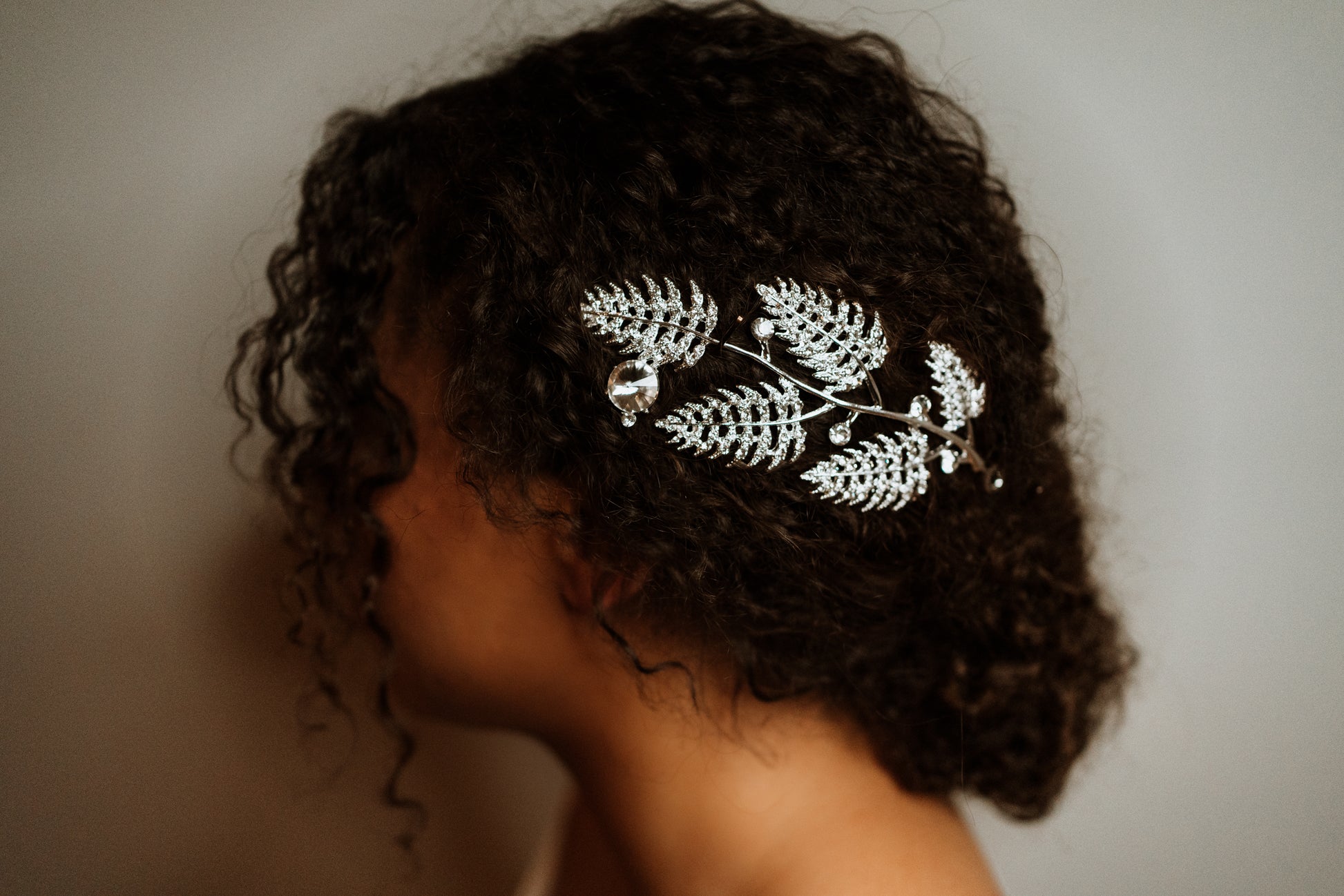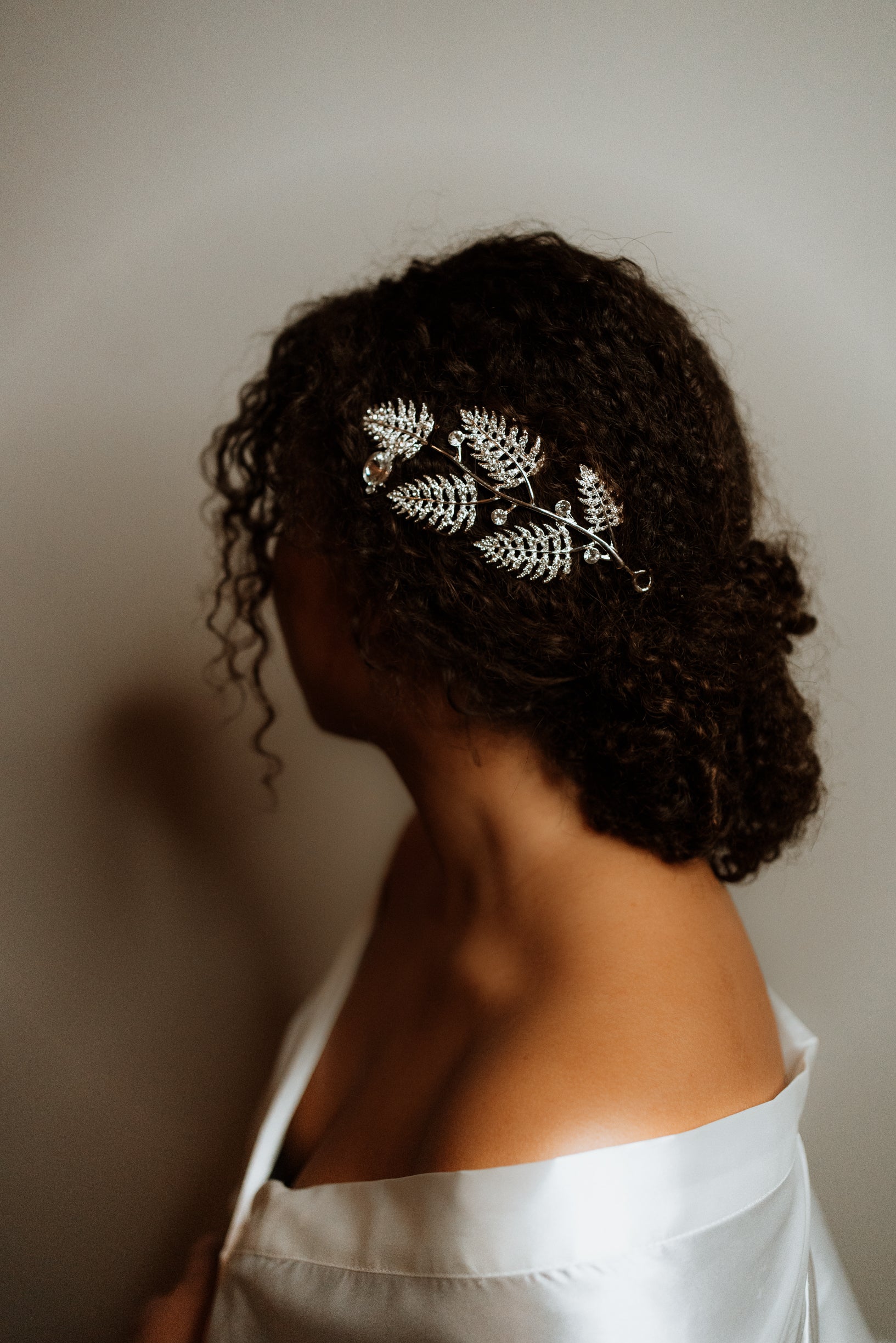 The Jordynne is unique and has a gorgeous silver leaf design. Wear it on a side to add a stunning focal point on your wedding hairdo. We love it and it's the perfect hair accessory for any bride!