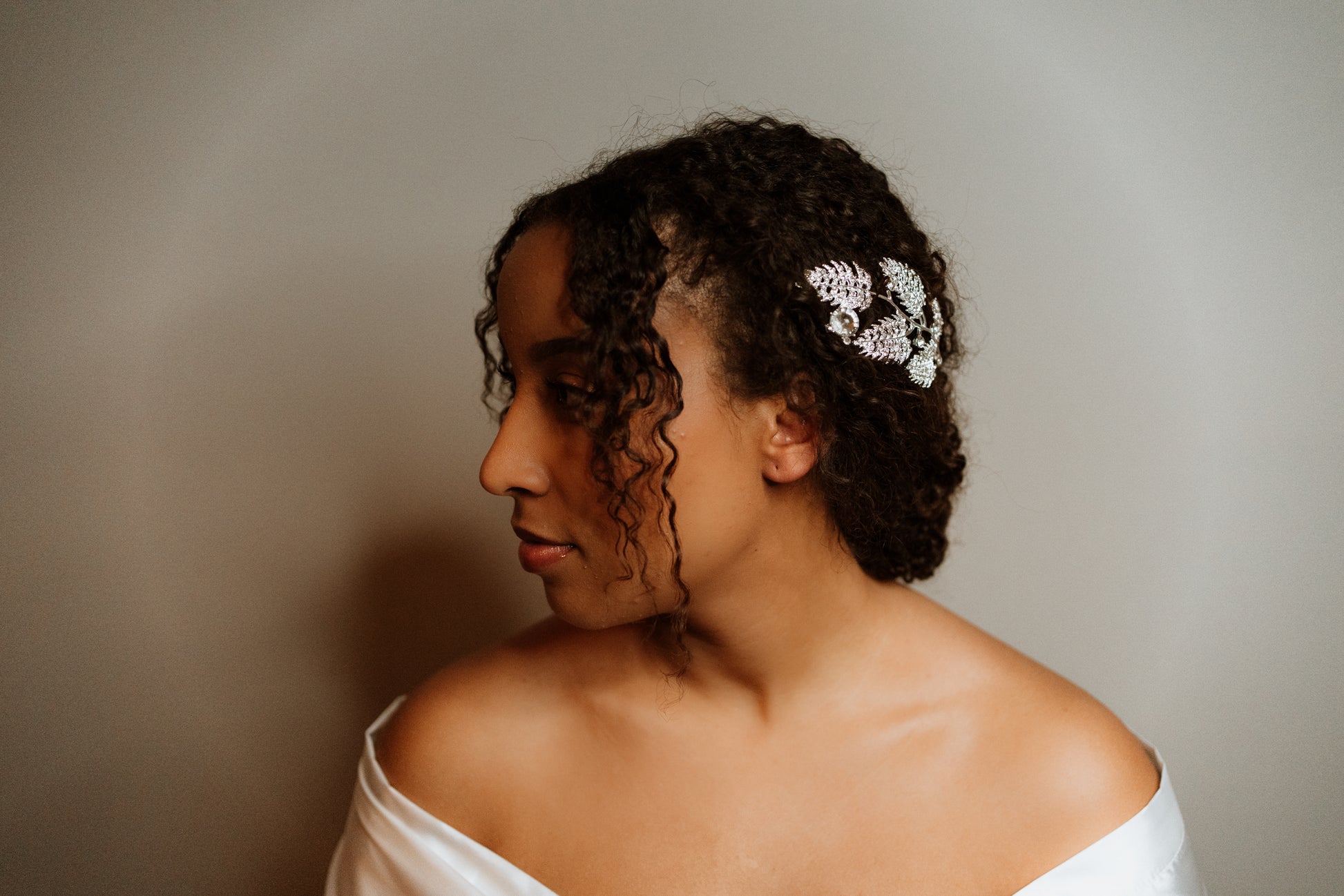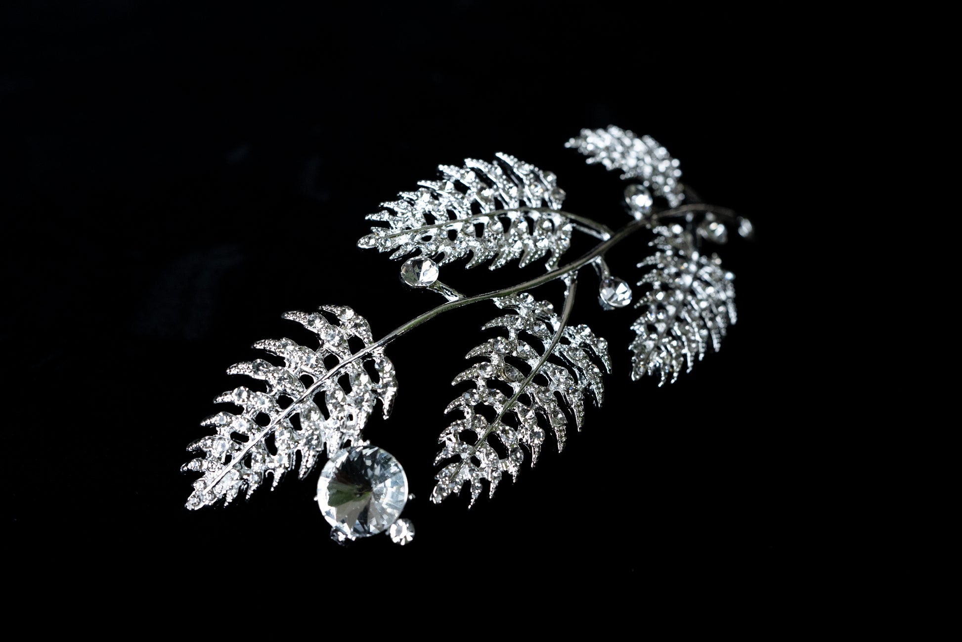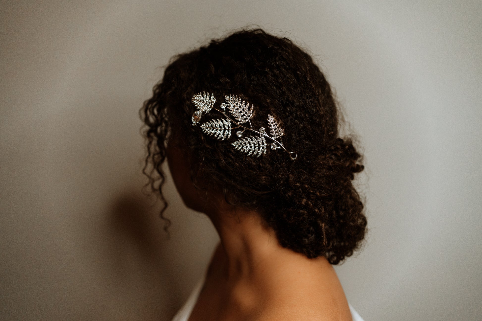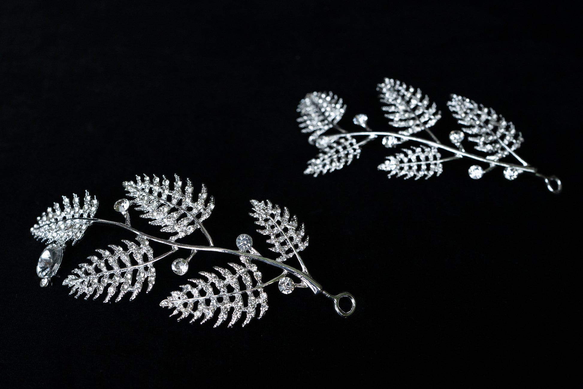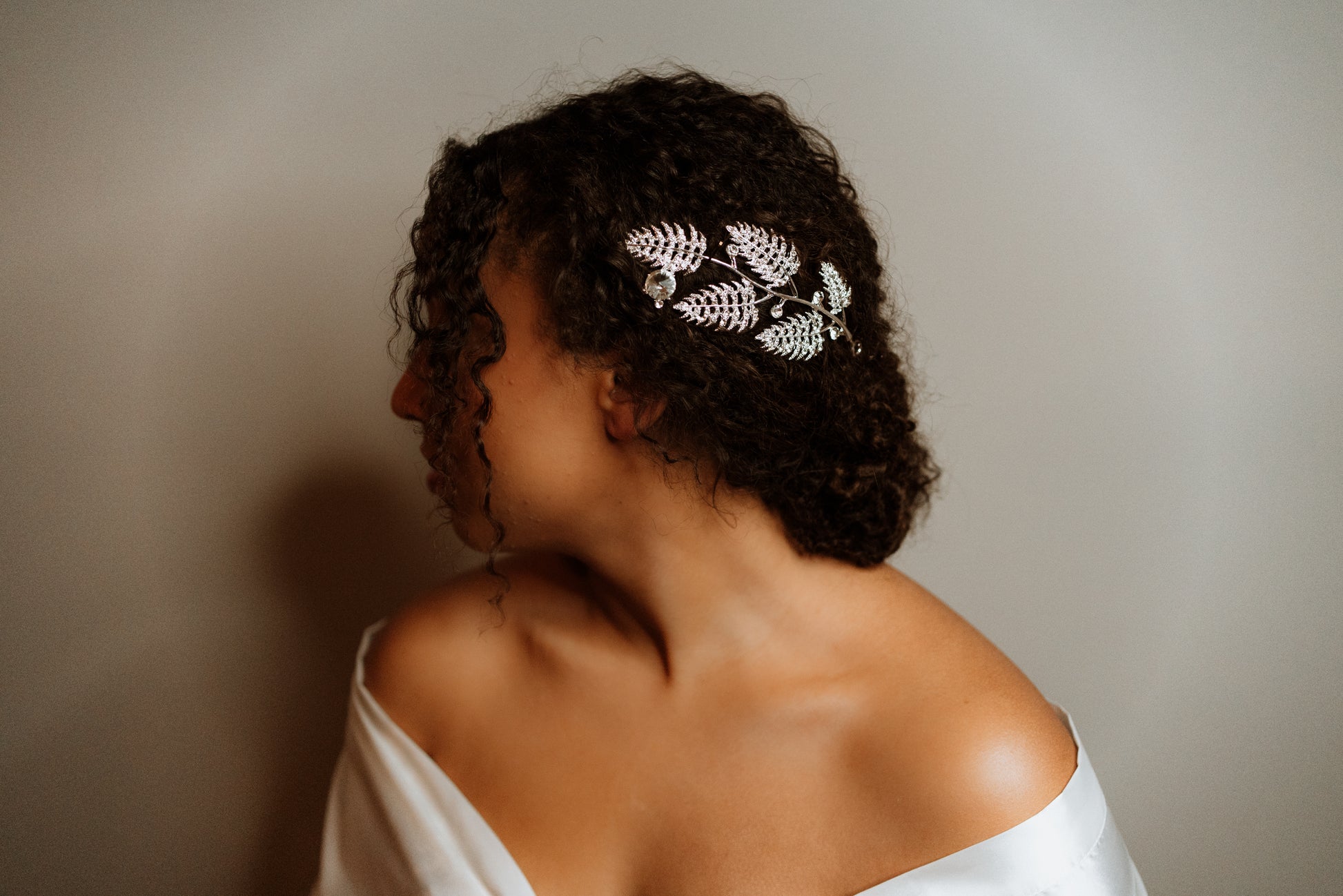 The Jordynne is unique and has a gorgeous silver leaf design. Wear it on a side to add a stunning focal point on your wedding hairdo. We love it and it's the perfect hair accessory for any bride!