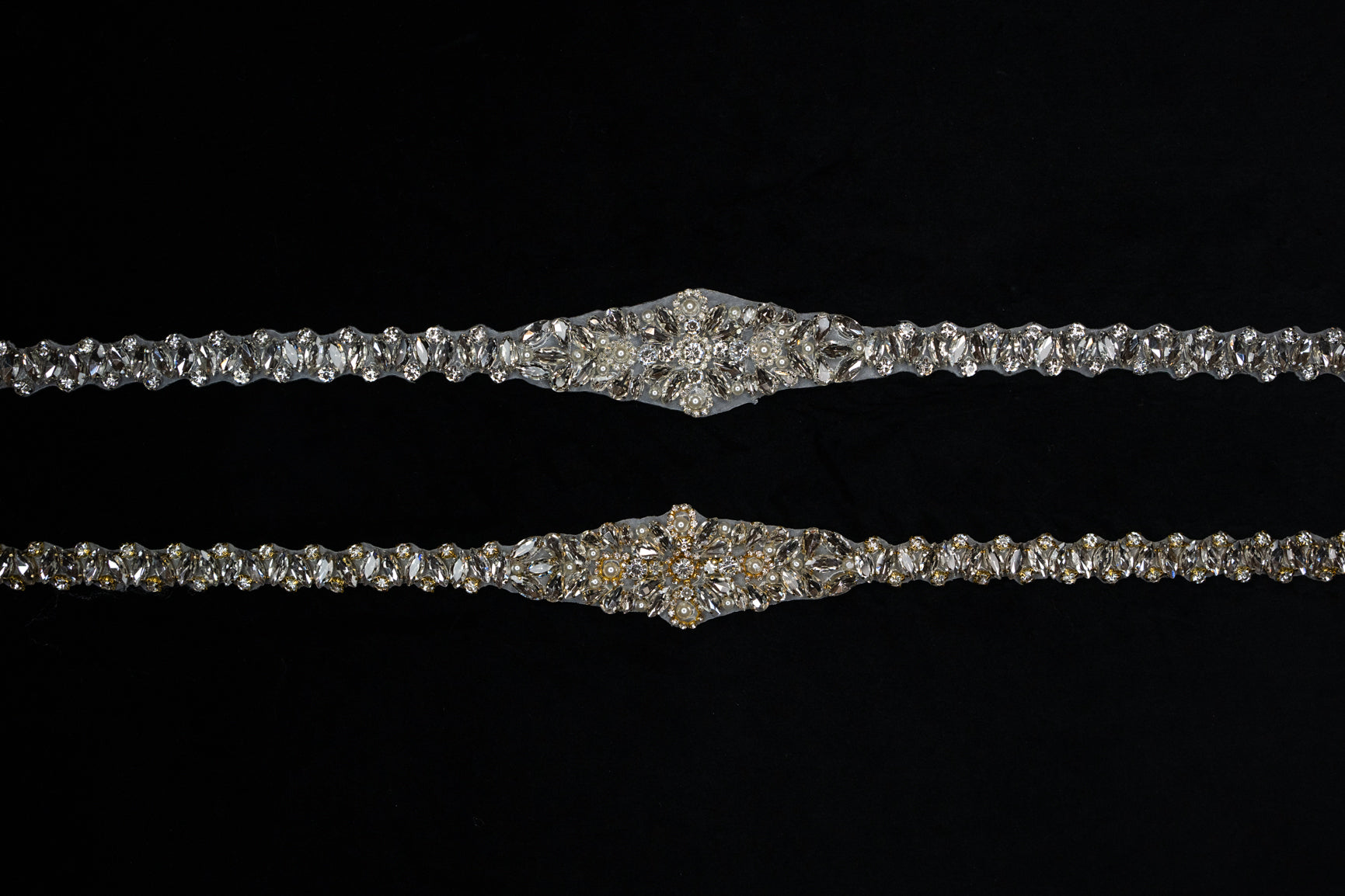 This belt is FANTASTIC! I was worried about ordering online, especially a website I wasn't familiar with, but I am so glad I took the chance. I got it at a great price, which was important because I was buying 3 to sew all the way around my dress (I'm a big gal!). Anywhere else I was looking would have been HUNDREDS of dollars! When I received them in the mail, I was blown away by the quality! They were just as bright and sparkly as in the pictures. It was easy to sew onto my dress, even taking a few pieces off to alter the length was no problem. There are a few areas where you can see the painting on the leaves spill over the to the other side or there's a rough spot around a gem but they are handmade pieces, they're such small details I could not have noticed if I wasn't right up close and personal sewing it on, and if it bothered me it would have been such an easy fix anyways. Very happy with my purchase here!