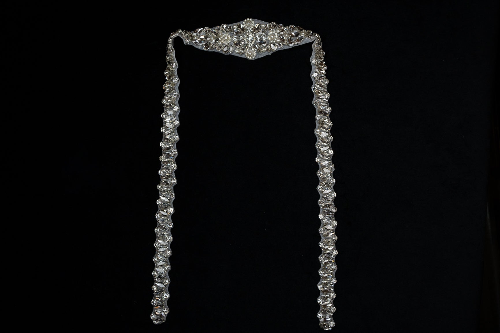 The Kaitlyn adds a gorgeous amount of bling to your dress. This belt is long and can wrap around your waist so you can shine from every angle. it comes in 2 colours: silver and gold.