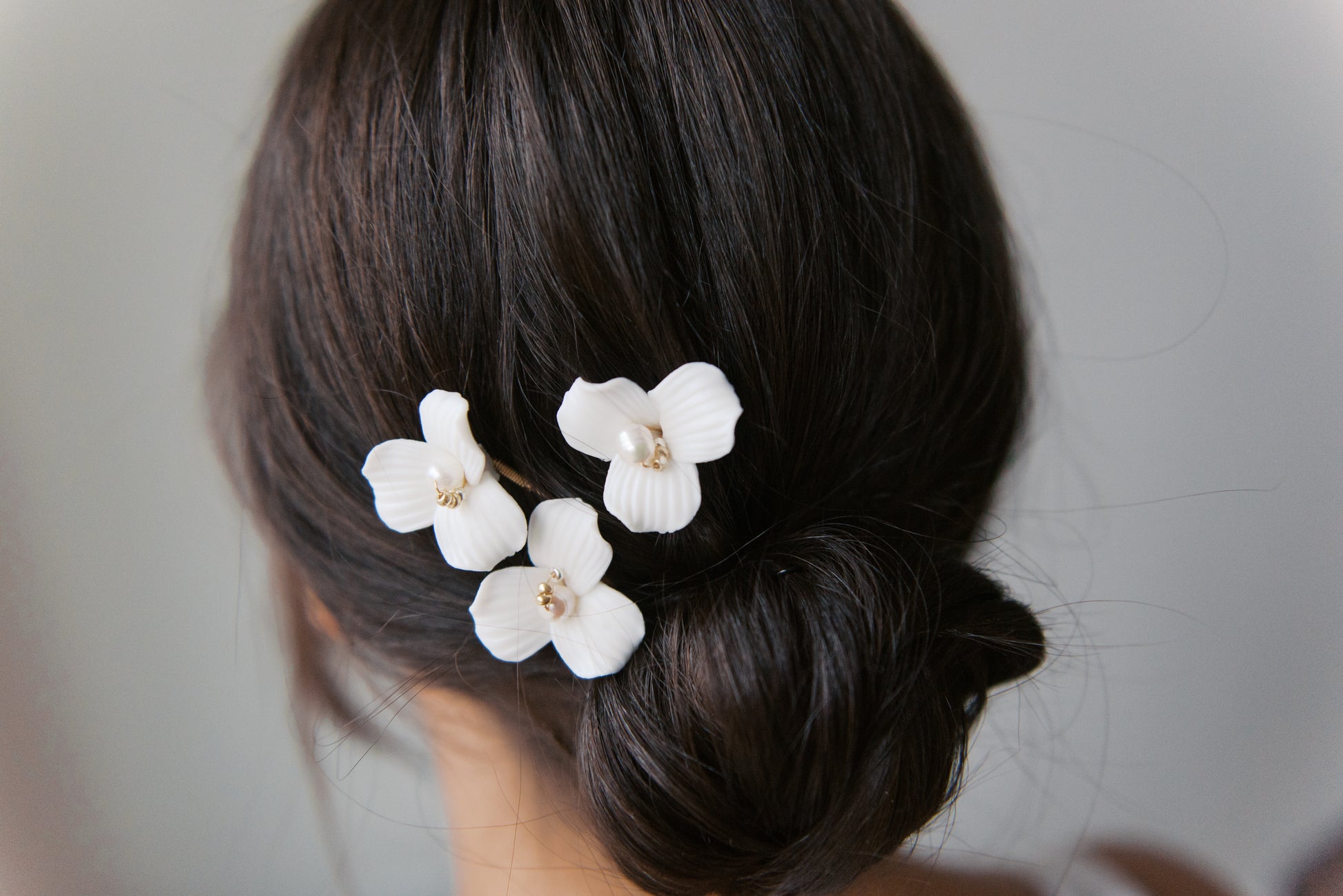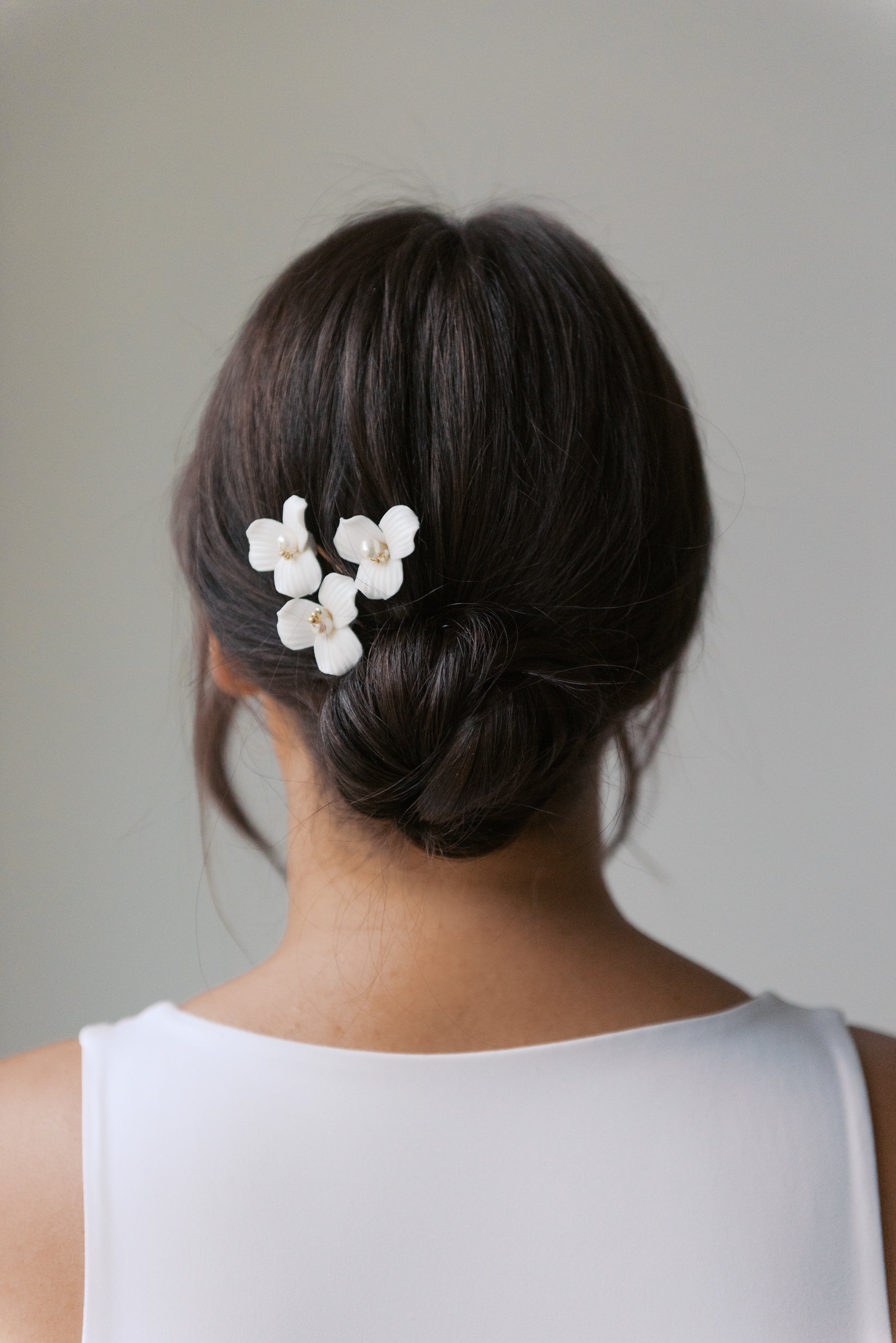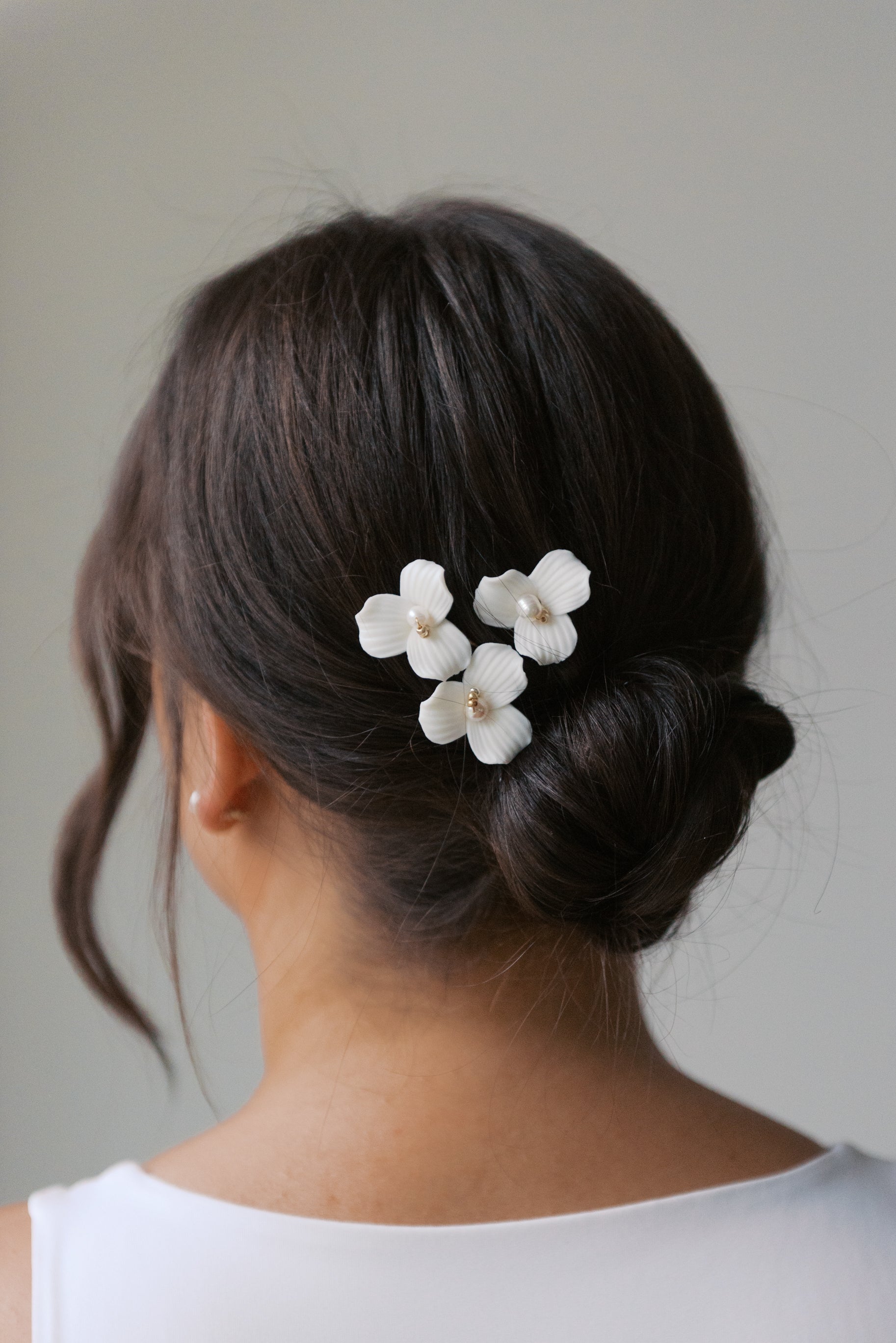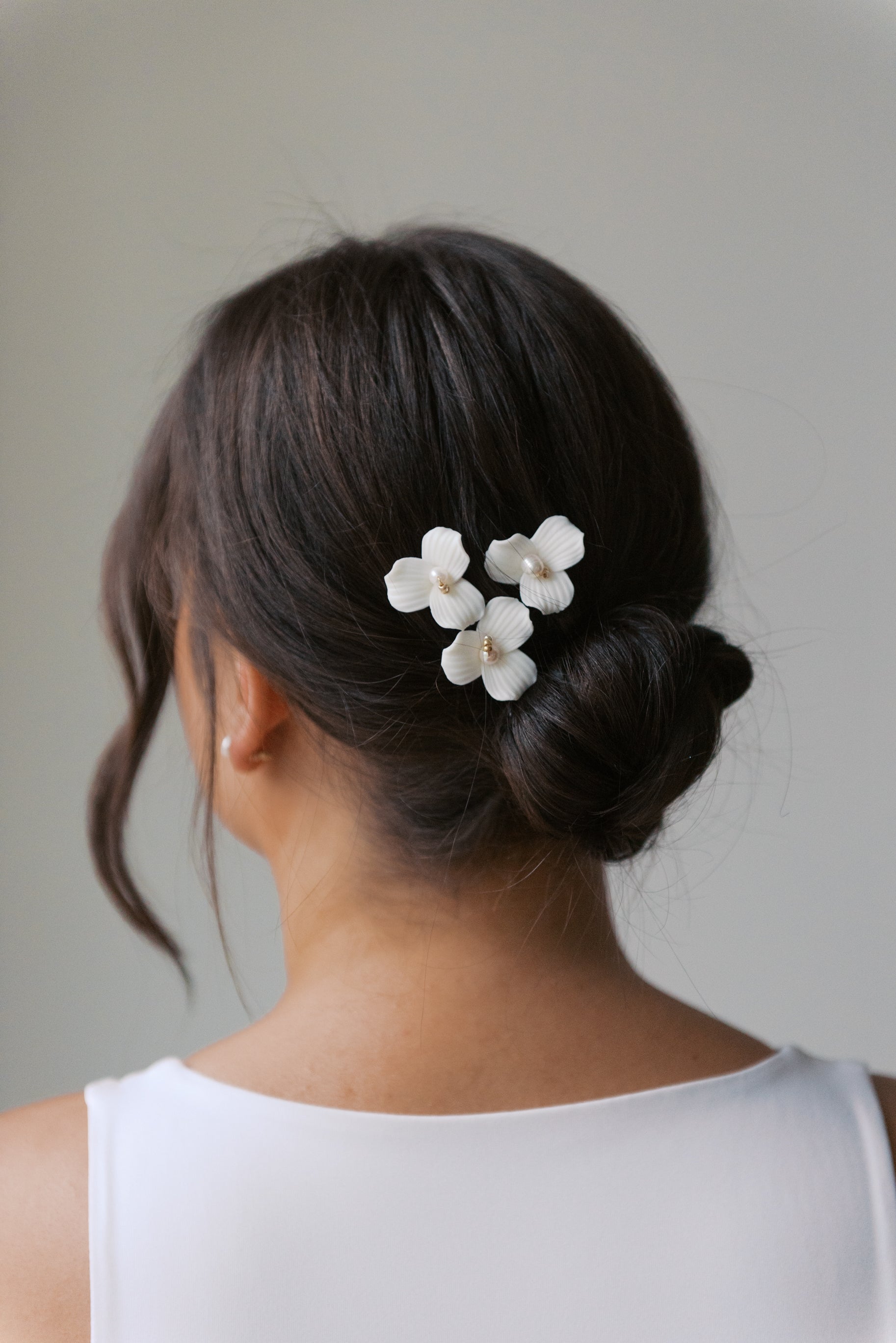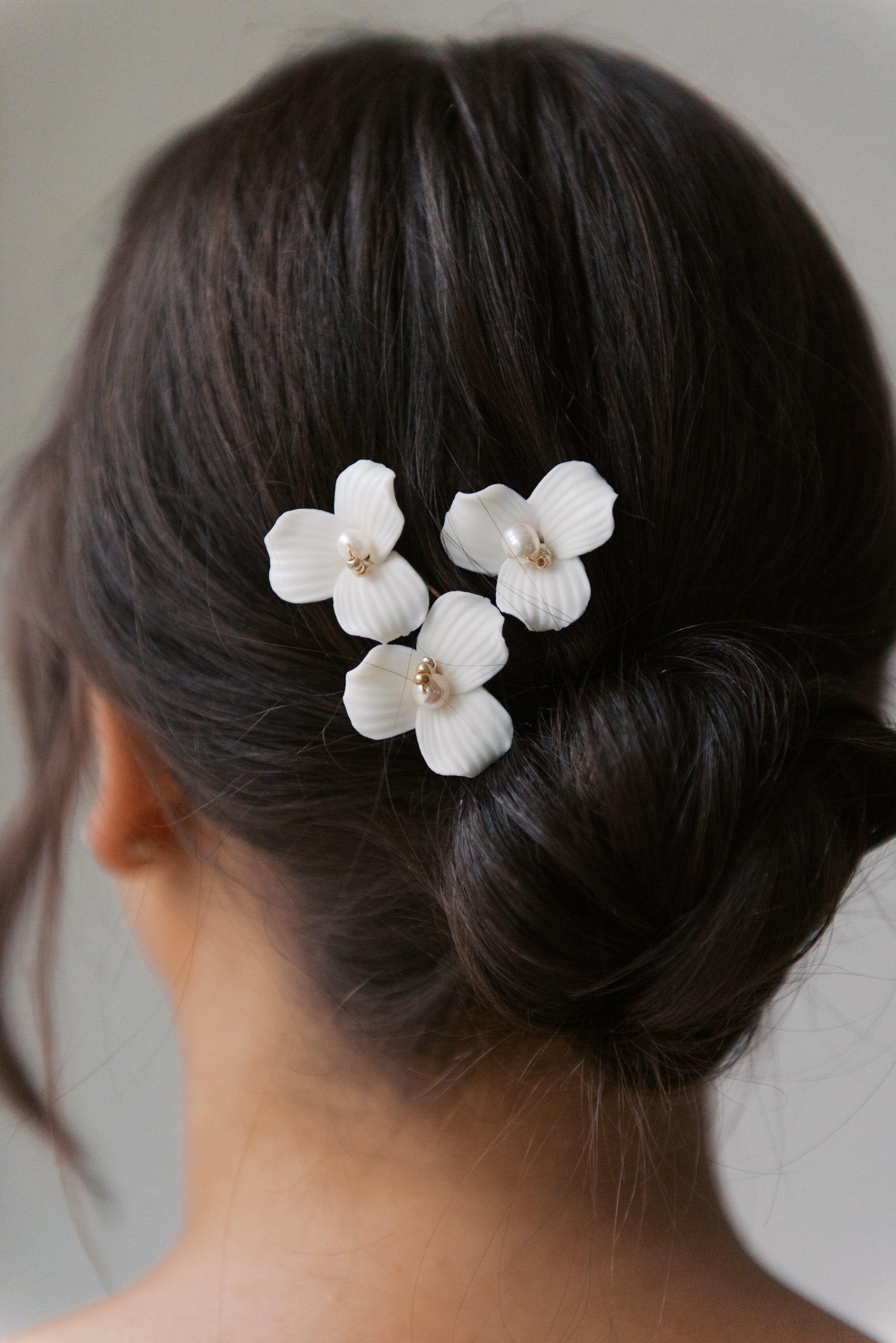 Adorned with bold porcelain flowers, these hair pins can be placed any way you'd like. It makes the perfect finishing touch to complete your bridal look.