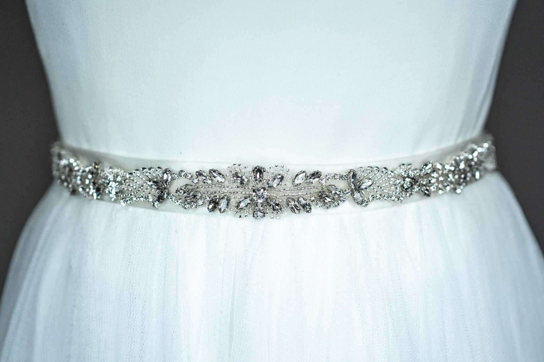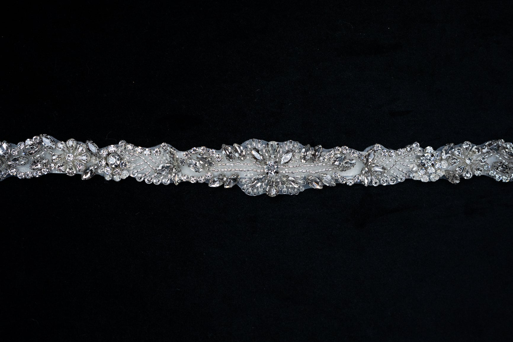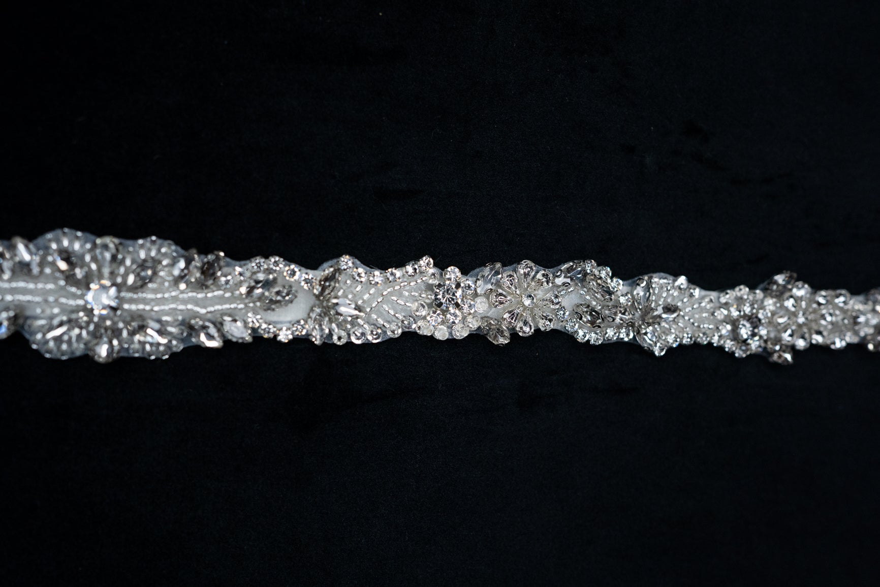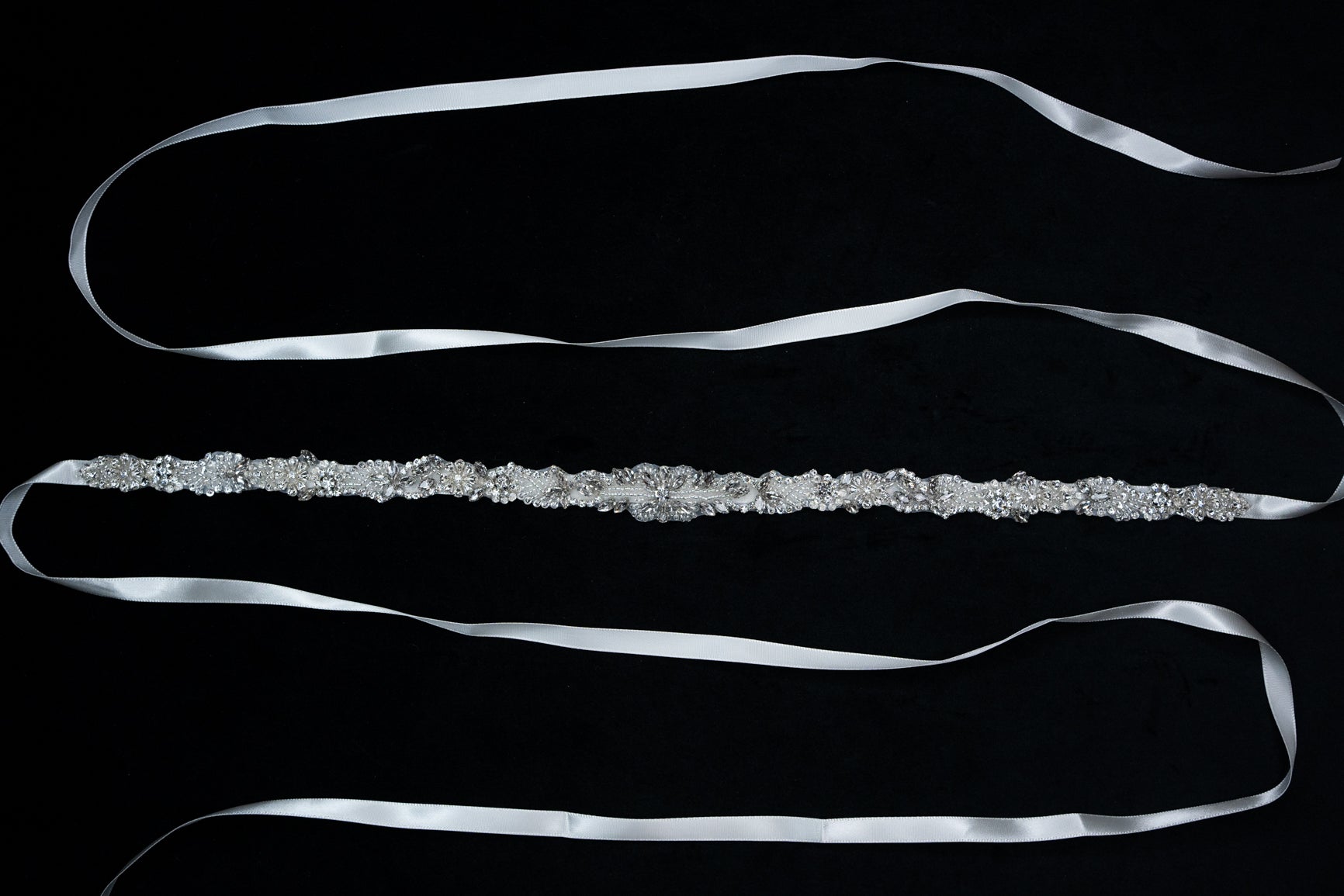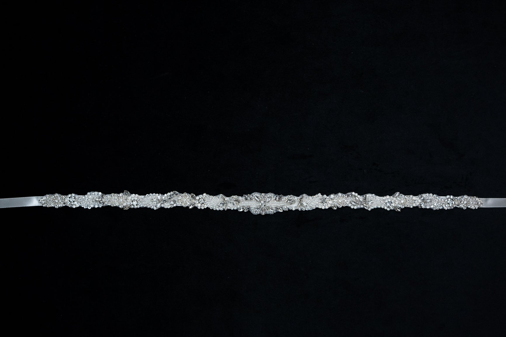 Materials: Crystals, Beads, Satin Ribbon.
