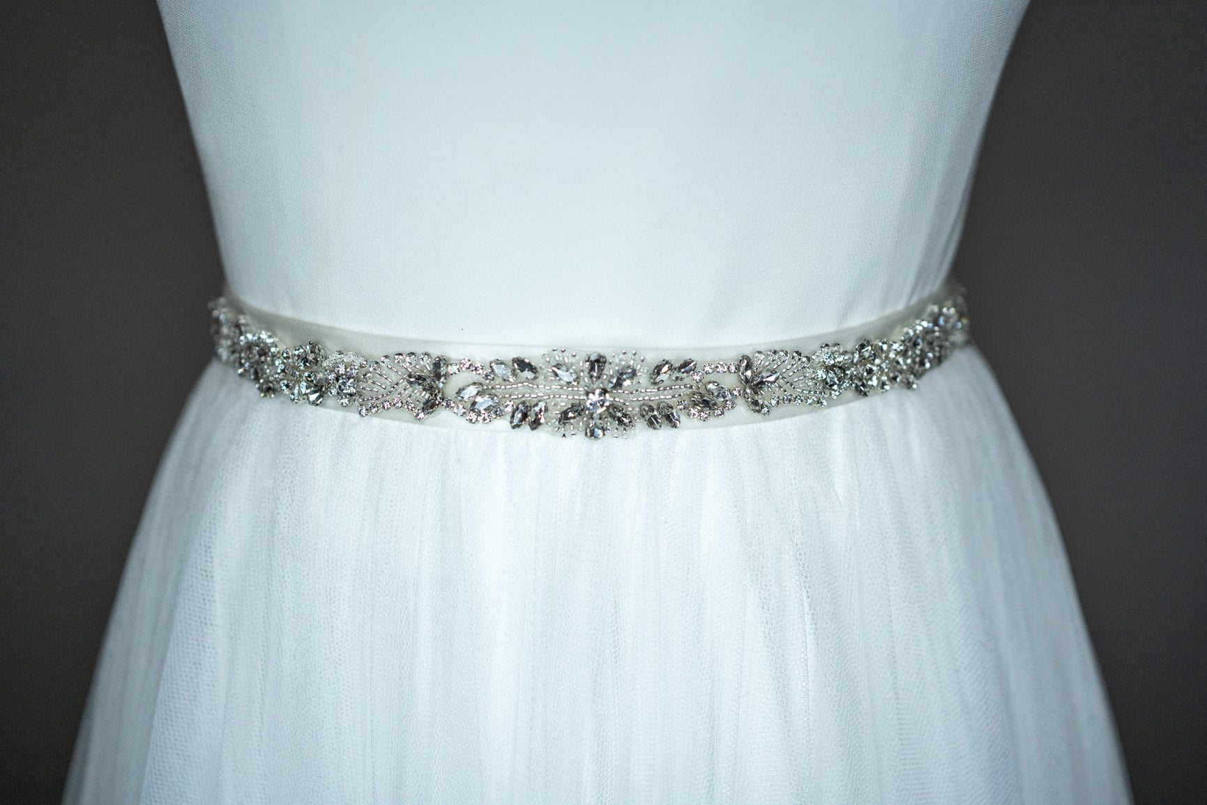 We love this stunning handmade crystal and beaded belt! This delicate belt is the perfect addition to your wedding dress.