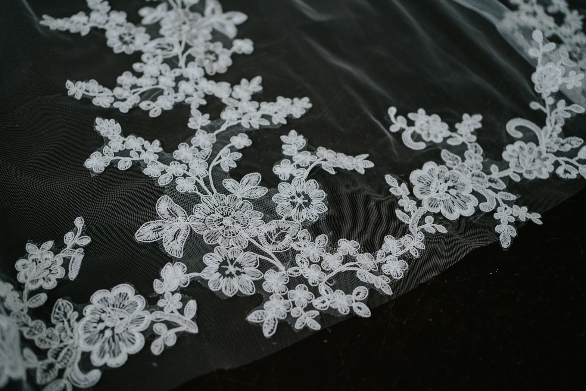 This high quality veil is handcrafted and has a beautiful lace edge. It's a beautiful addition on your wedding day!