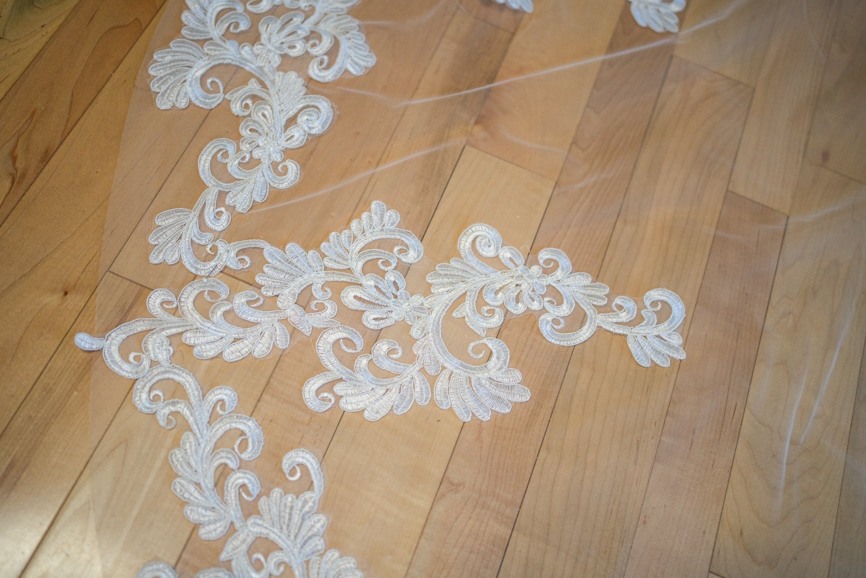 This gorgeous Cathedral length handmade veil will be the finishing touch on your wedding day.
