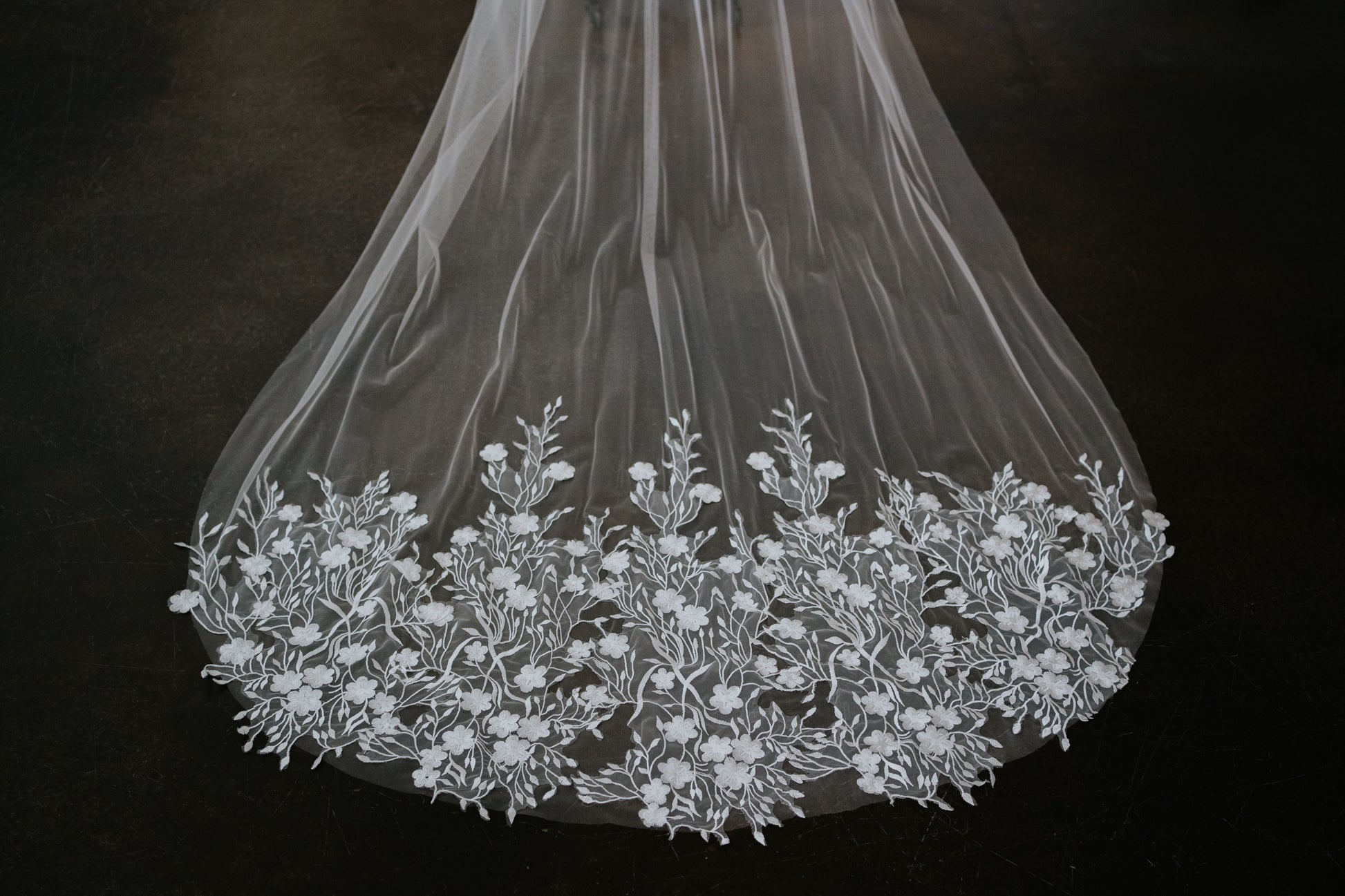 Emiliana Cathedral Length Bottom Lace Veil with Comb