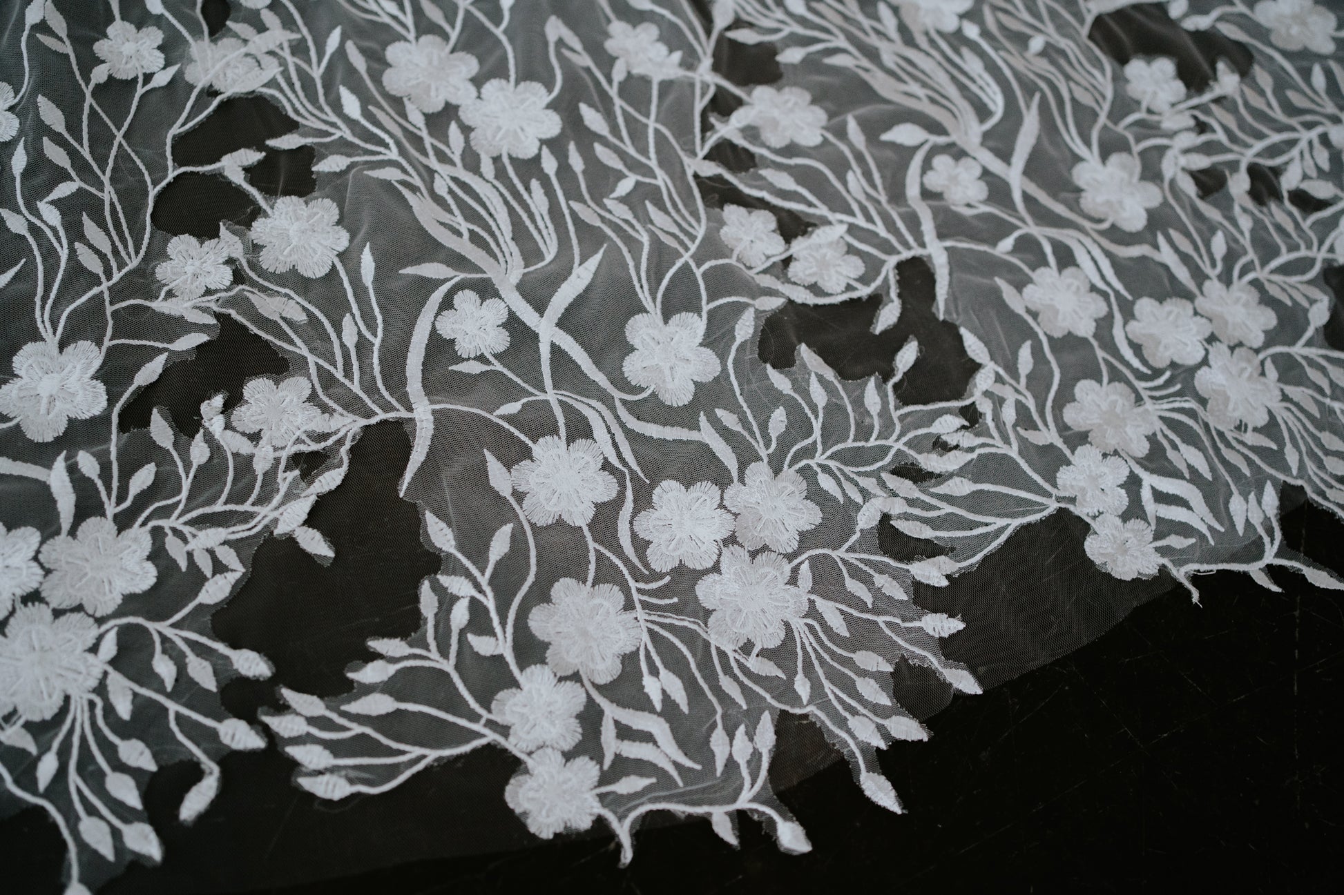 This gorgeous lace Cathedral length handmade veil will be the finishing touch on your wedding day.
