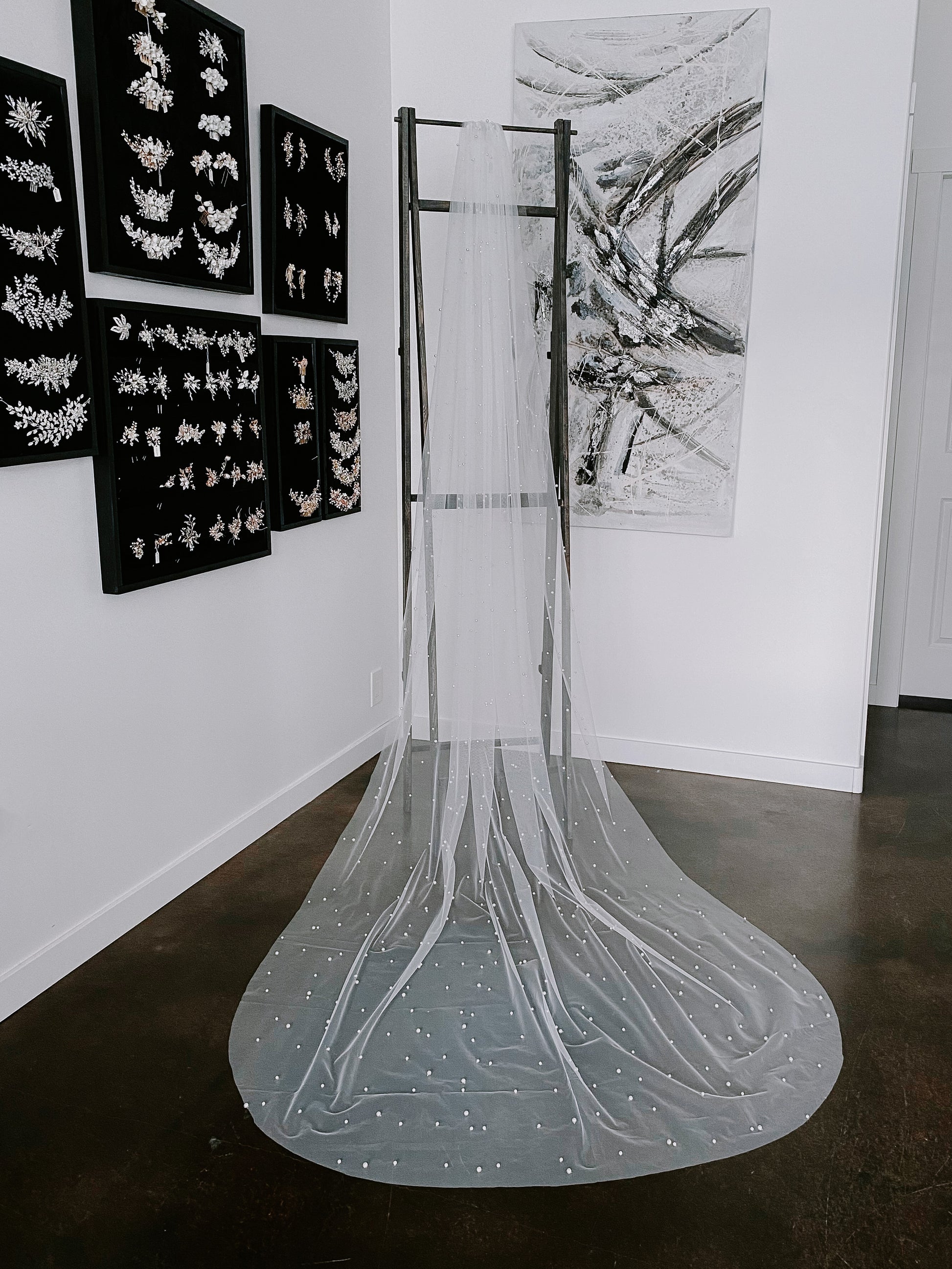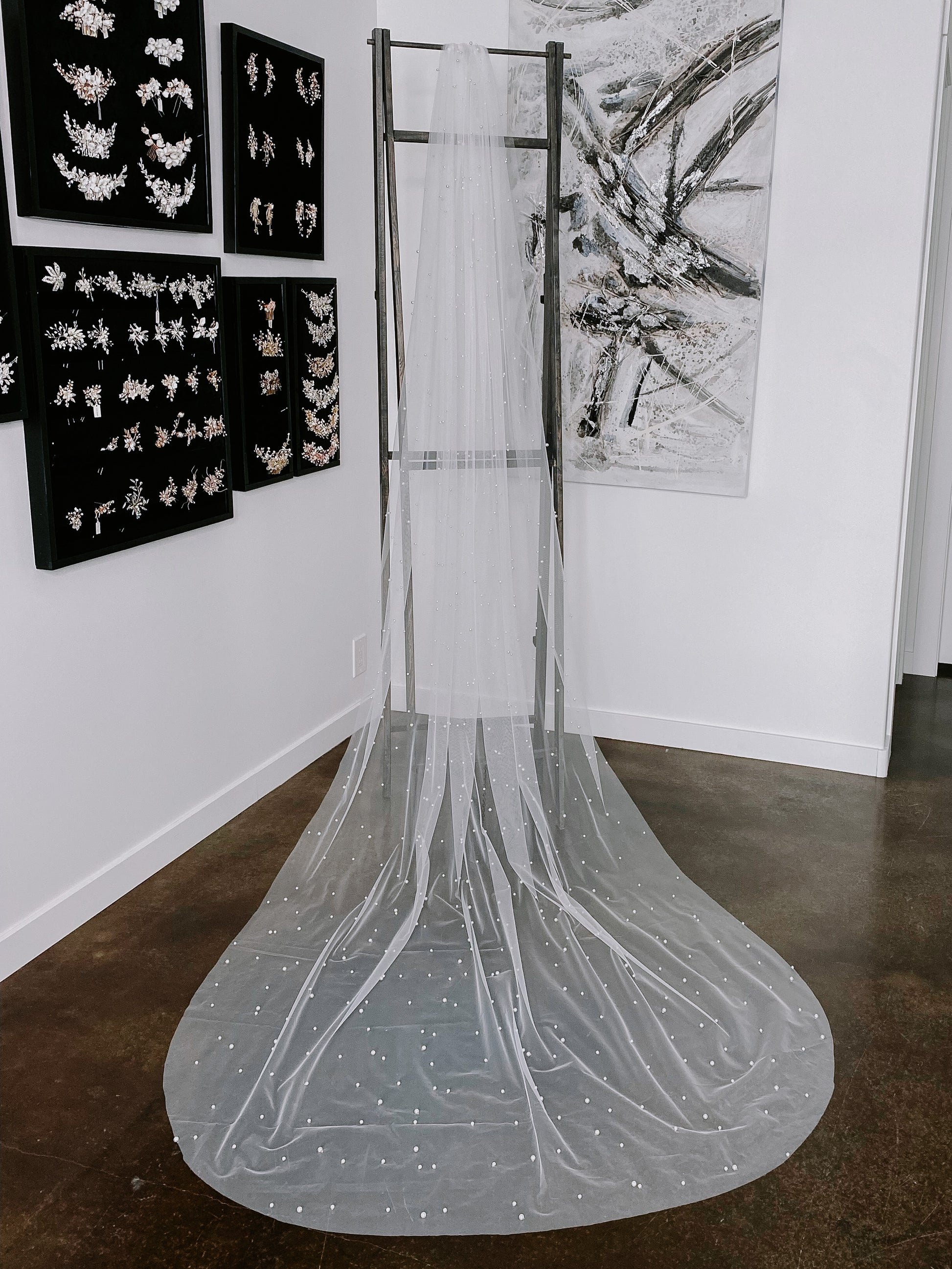 Frances Cathedral Length Pearl Studded Veil with Comb