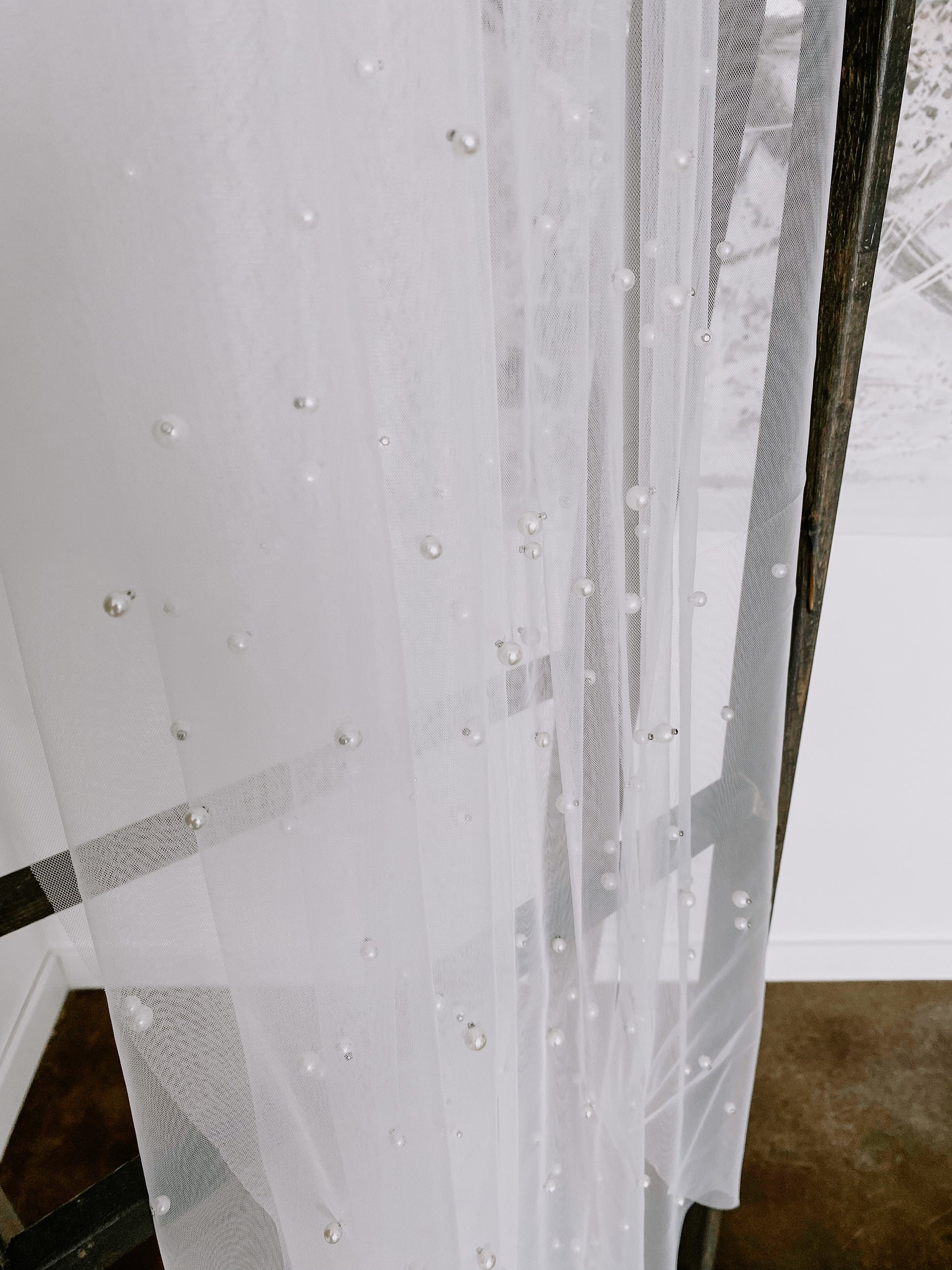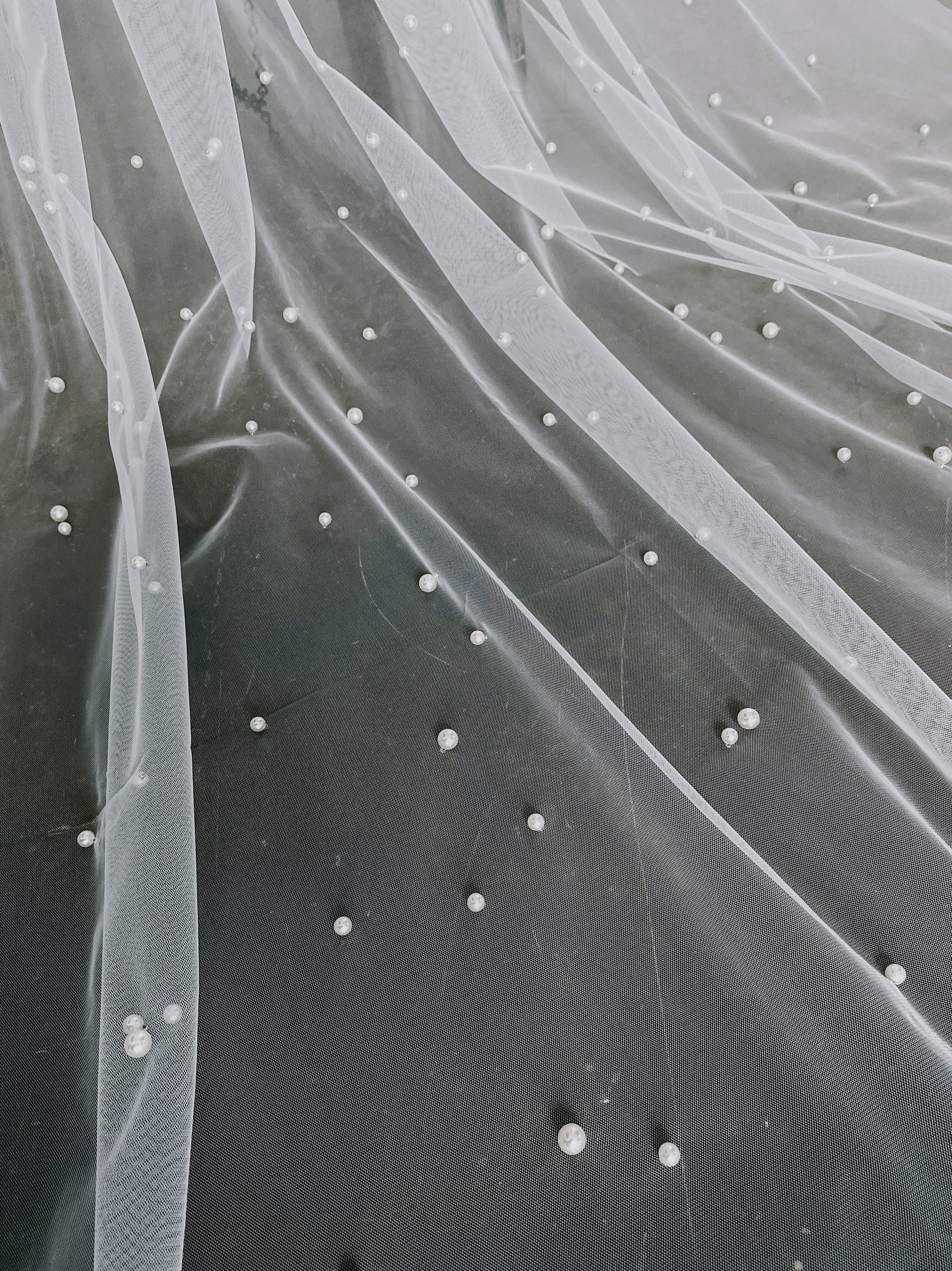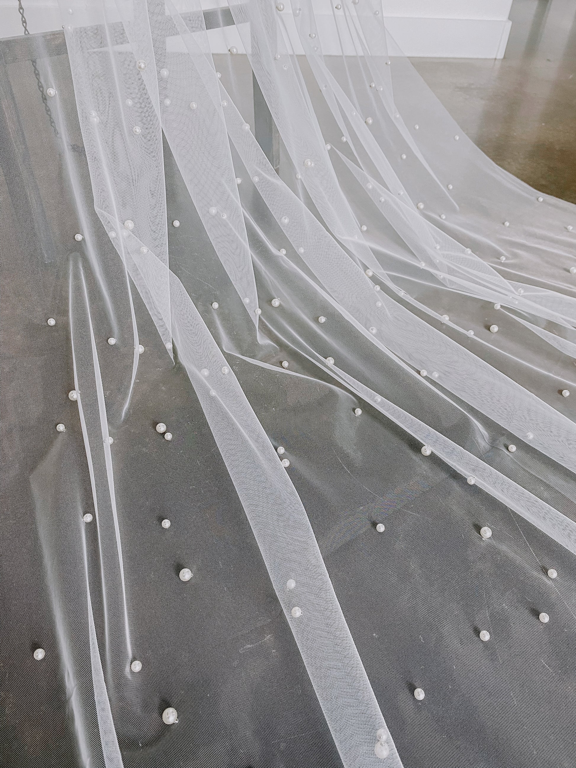 This veil is handcrafted with pearls beautifully placed all over the tulle.
